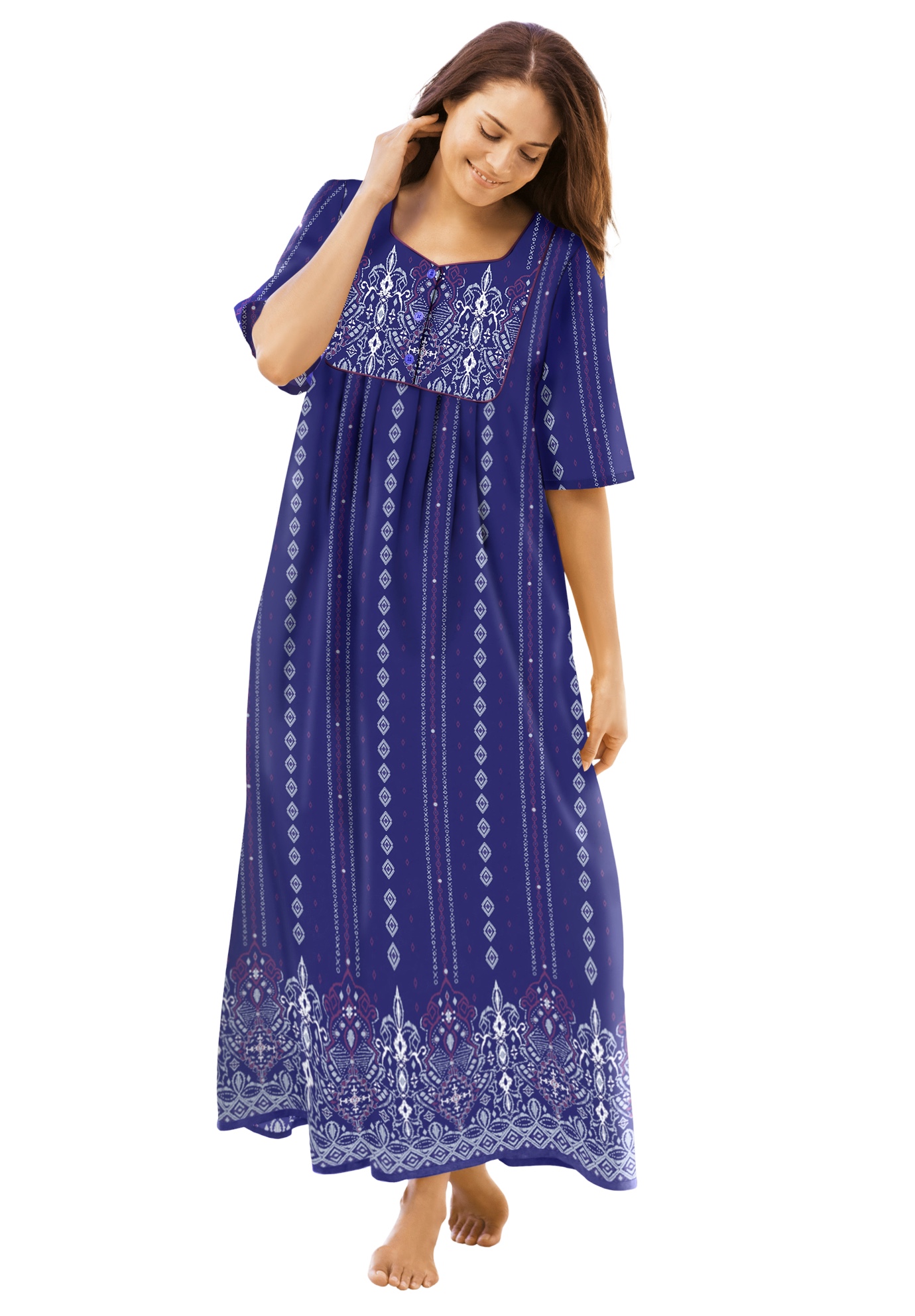 Plus Size Women's Long Floral Print Cotton Gown by Dreams & Co. in Evening Blue Flowers (Size 2X) Pajamas