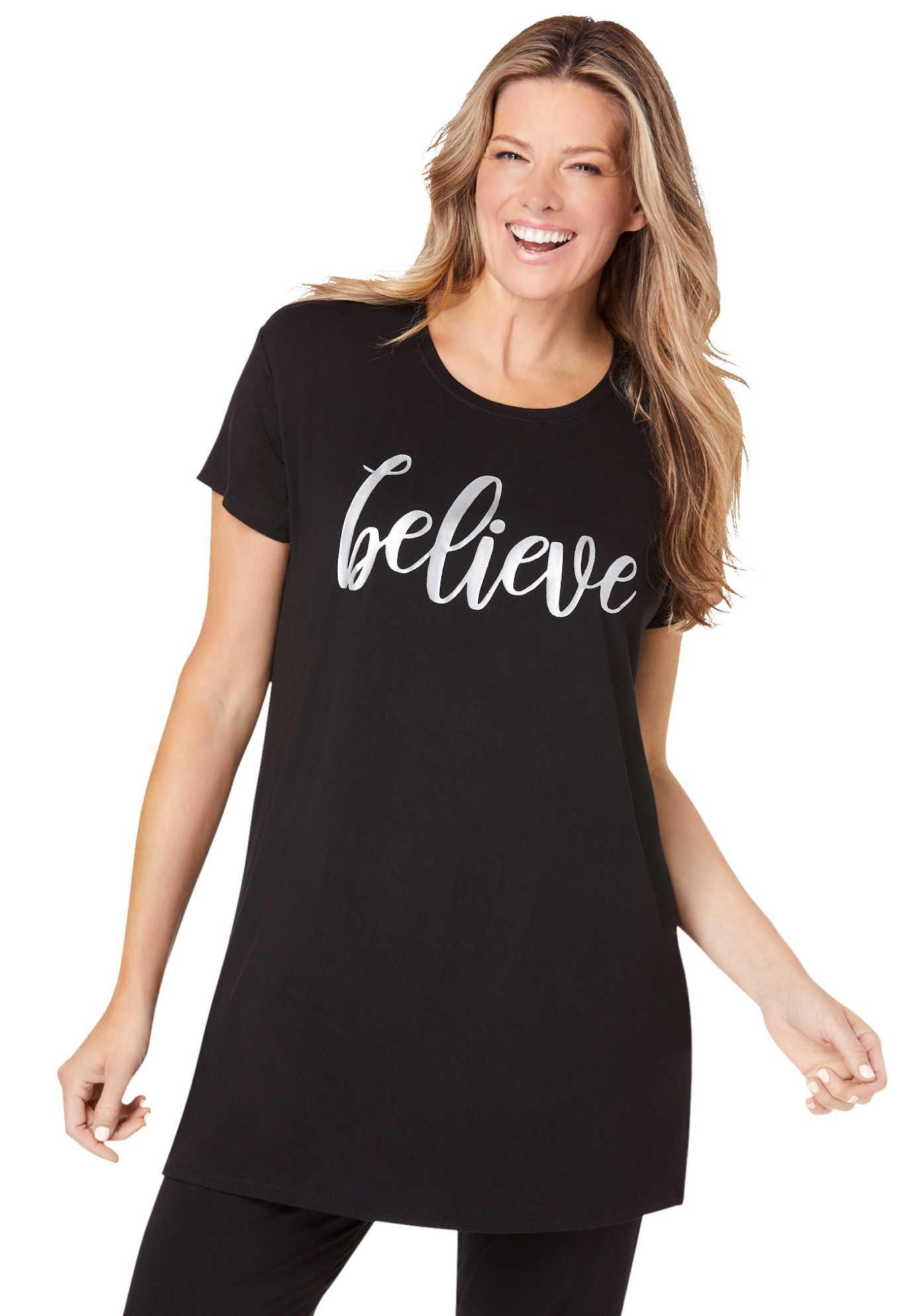 Plus Size Women's Soft PJ Tunic Tee by Dreams & Co. in Black Believe (Size 22/24)
