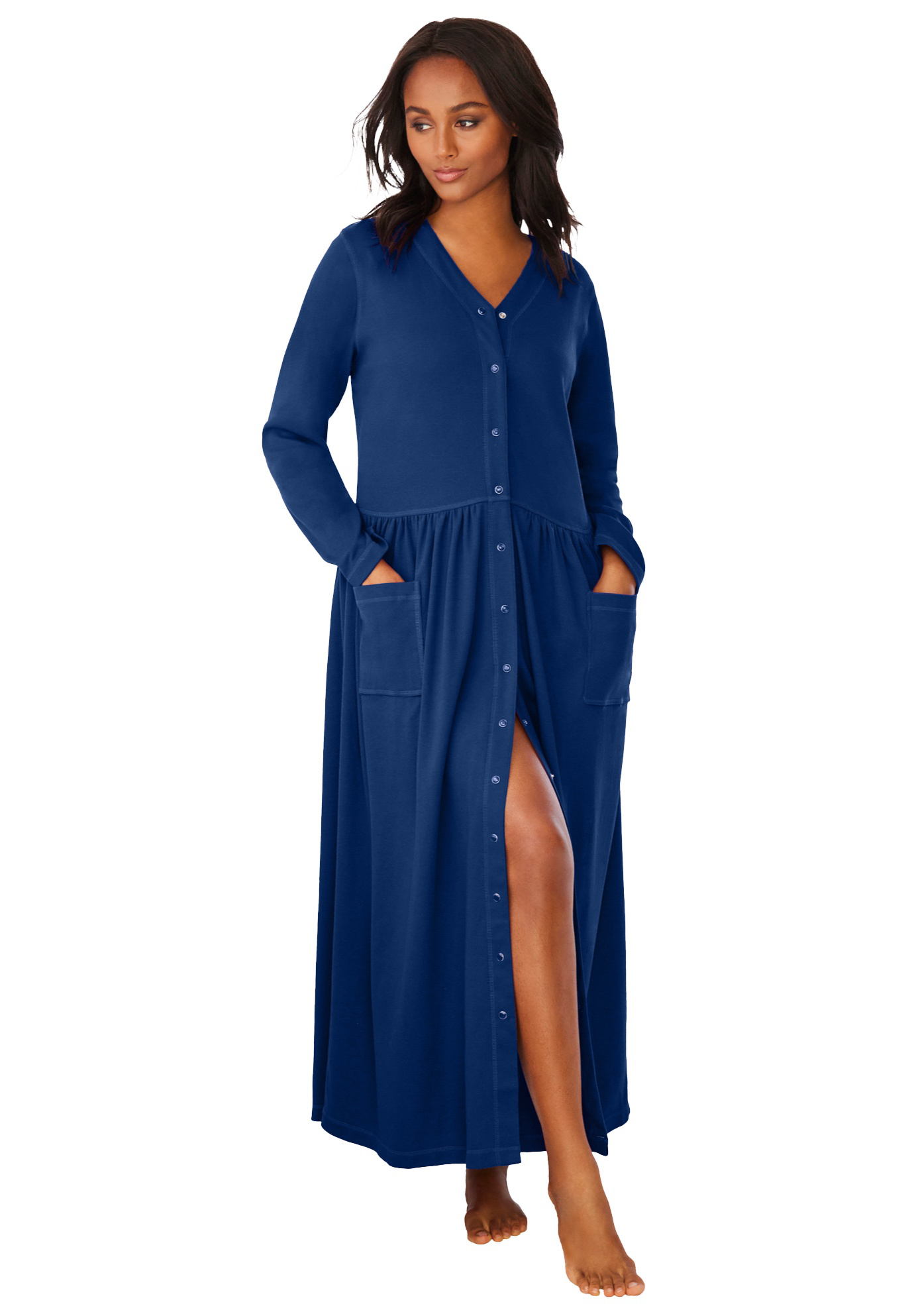 Plus Size Women's Long Snap-Front Knit Lounger by Only Necessities in Evening Blue (Size 1X)