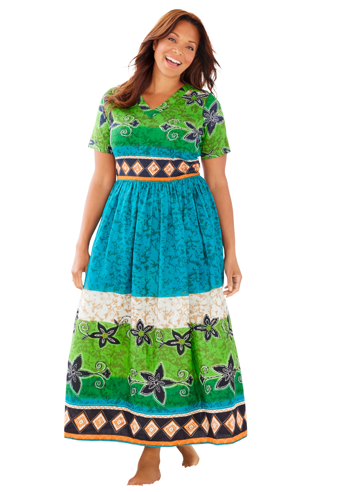 Plus Size Women's Long Crinkle Cotton Lounger by Only Necessities in Laguna Green Ombre (Size M)