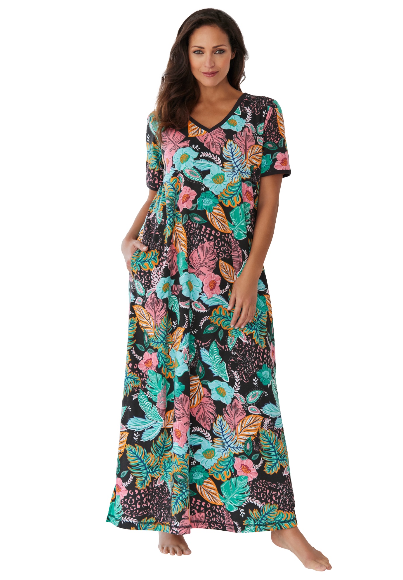 Plus Size Women's Long T-Shirt Lounger by Dreams & Co. in Black Multi Floral (Size 5X)