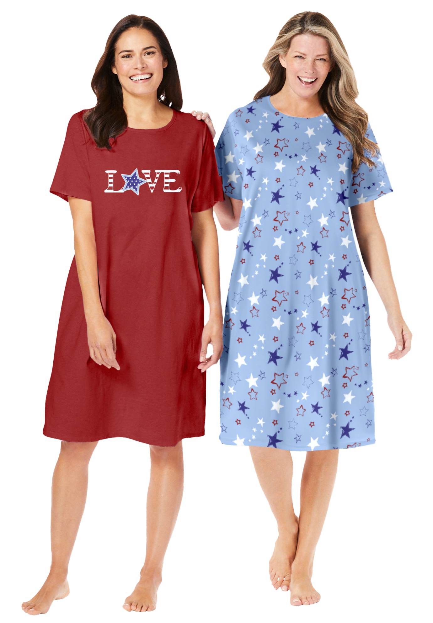Plus Size Women's 2-Pack Short-Sleeve Sleepshirt by Dreams & Co. in Sky Blue Americana Stars (Size 5X/6X) Nightgown