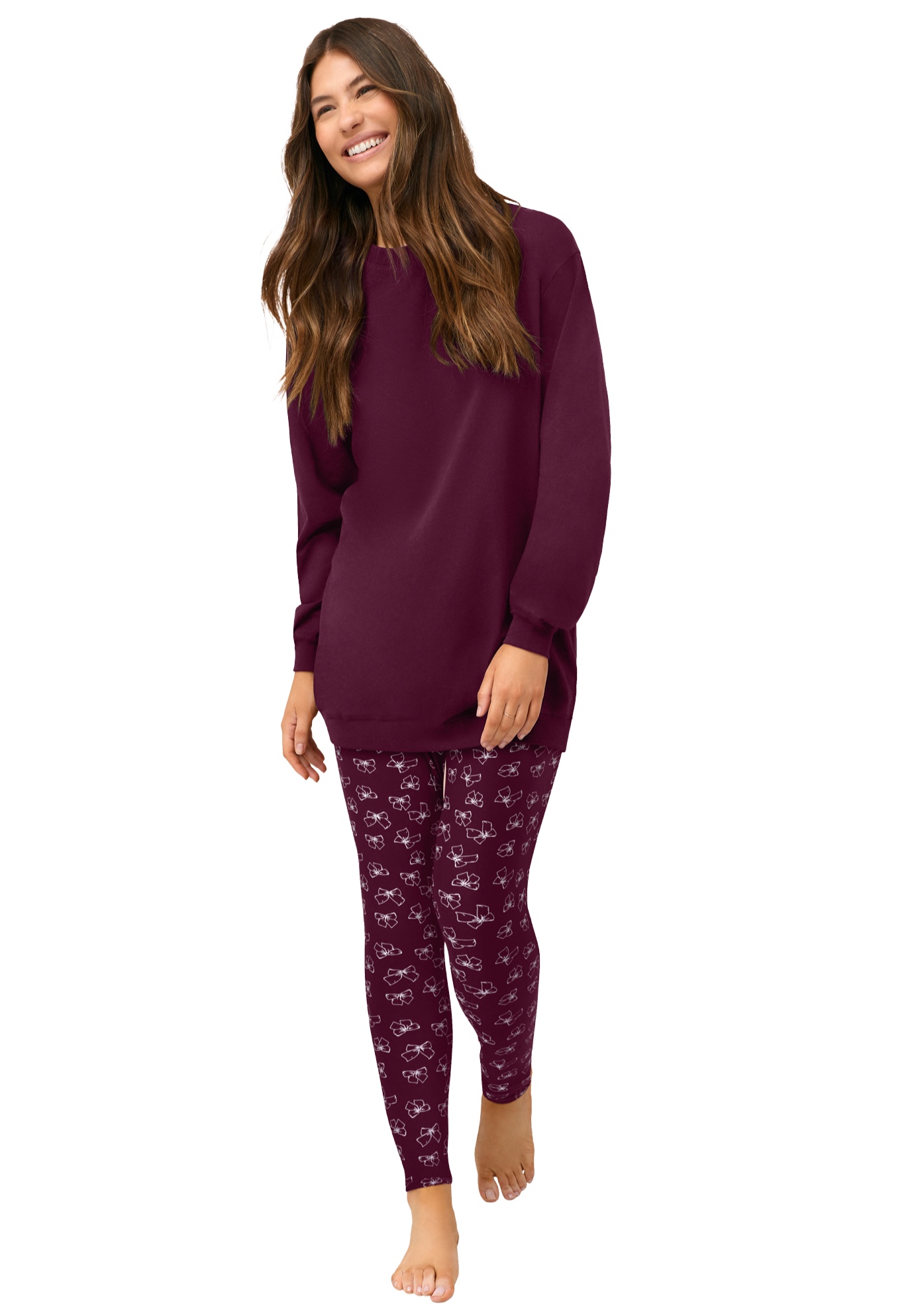 Plus Size Women's 2-Piece Tunic & Legging PJ Set by ellos in Midnight Berry Bow Print (Size 26/28)