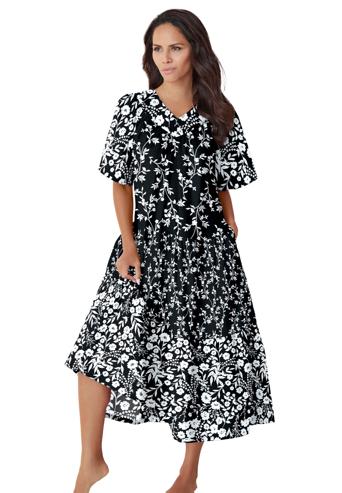 Plus Size Women's Tiered Print Lounger by Only Necessities in Black Floral (Size 2X)