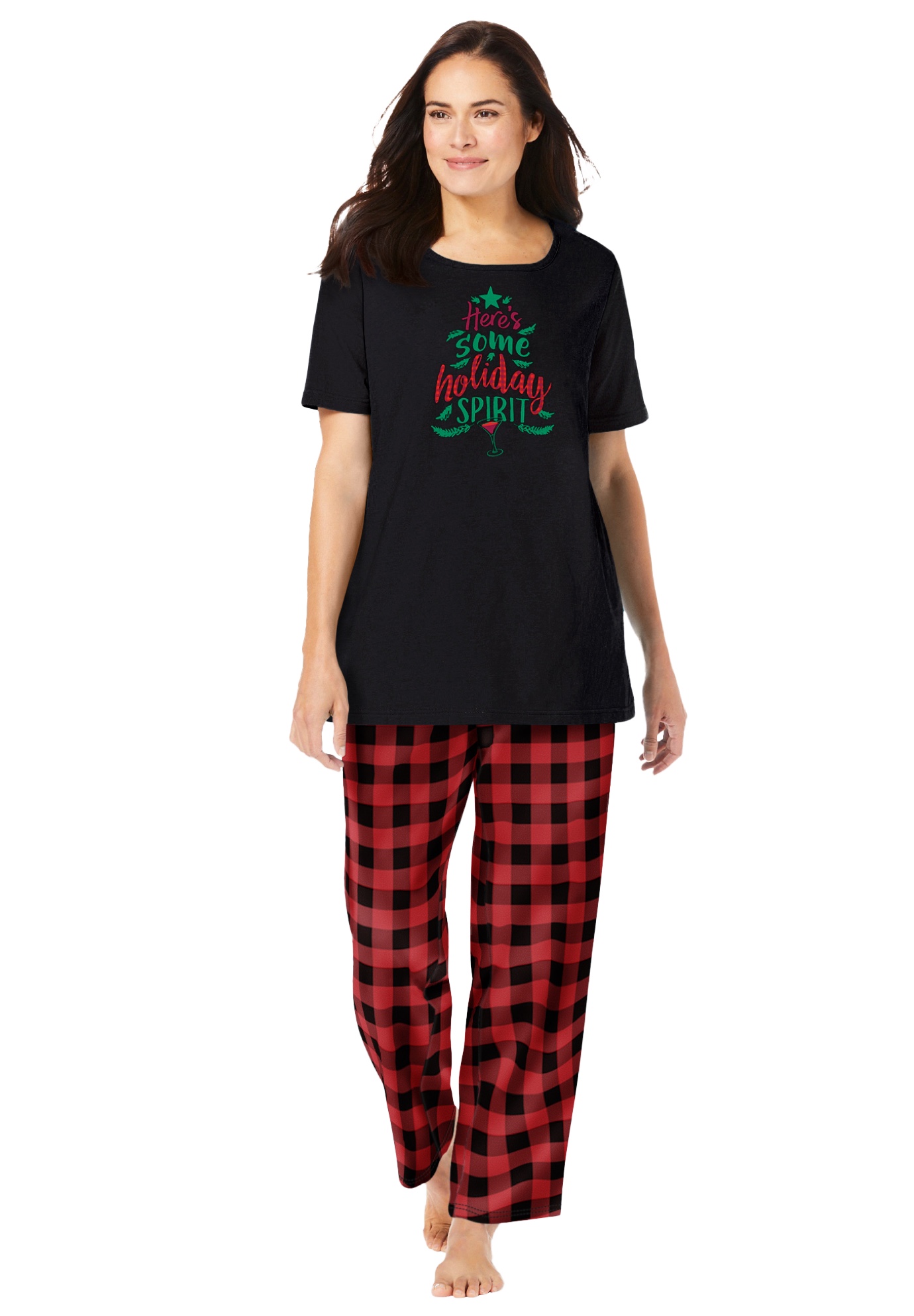 Plus Size Women's Graphic Tee PJ Set by Dreams & Co. in Red Buffalo Plaid (Size 6X) Pajamas