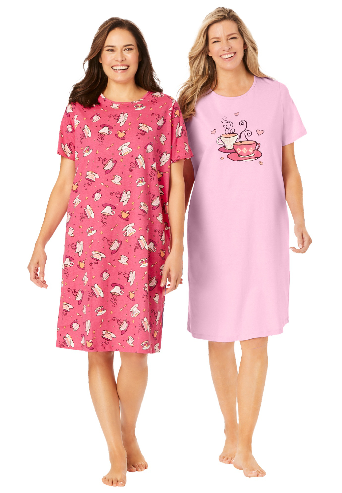 Plus Size Women's 2-Pack Short-Sleeve Sleepshirt by Dreams & Co. in Pink Tea Cup (Size 5X/6X) Nightgown
