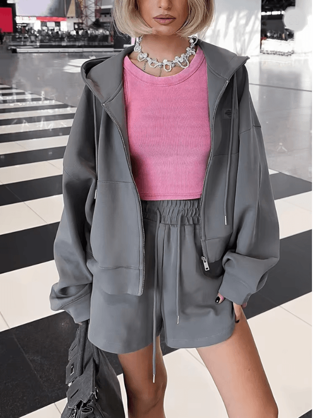 Cotton Oversized Pink Shorts Set For Women Two Piece Summer Lounge Outfit m blue