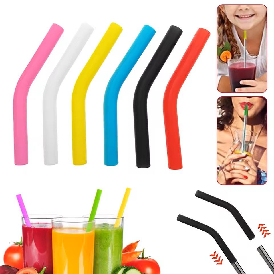 12pcs Silicone Straw Sleeves Reusable Straw Tips Food Grade Colorful Straw Covers Bendable Straw Accessories black (8 Mm)