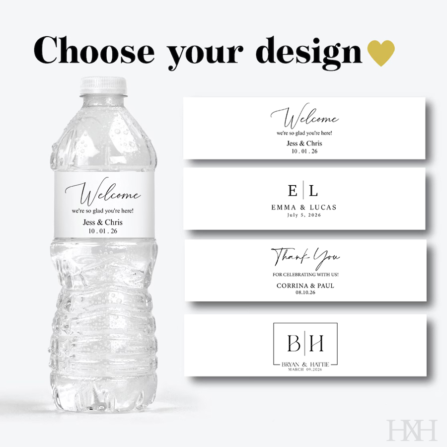 Custom Wedding Water Bottle Label Printable Wedding Water Bottle Stickers, Personalized Minimalist Wedding Sticker p541 21x5cm 30pcs