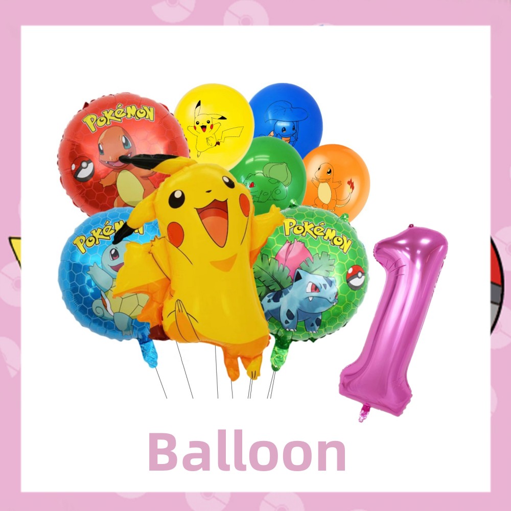 Pink Pokemon Birthday Party Decor: Kids Tableware, Balloons, Cake Toppers & Backdrop Color: Balloon Suit 1 9PCS