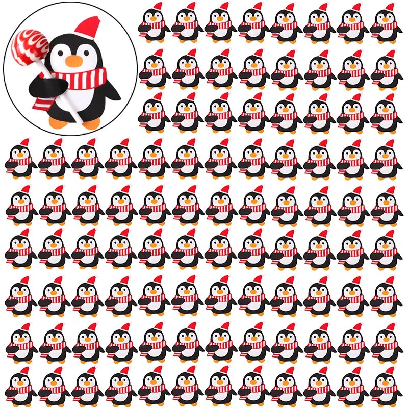 Festive Christmas Lollipop Paper Cards: Santa Claus, Penguin, Snowman Perfect For Kids Candy Gifts, Party Decoration 100PCS 2 Set Penguins