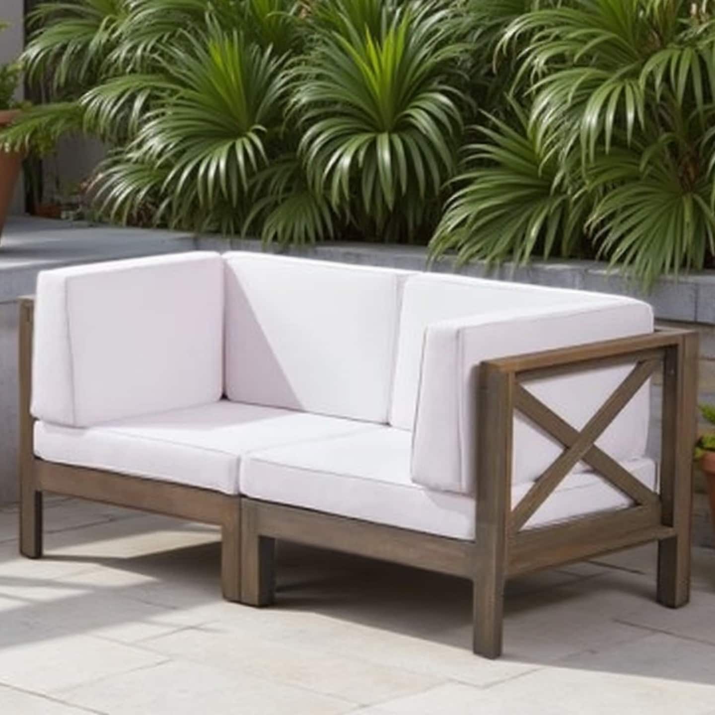 Modular 2-Piece Outdoor Loveseat Set with Cross-Back Acacia Wood Frame and Water-Resistant Cushions