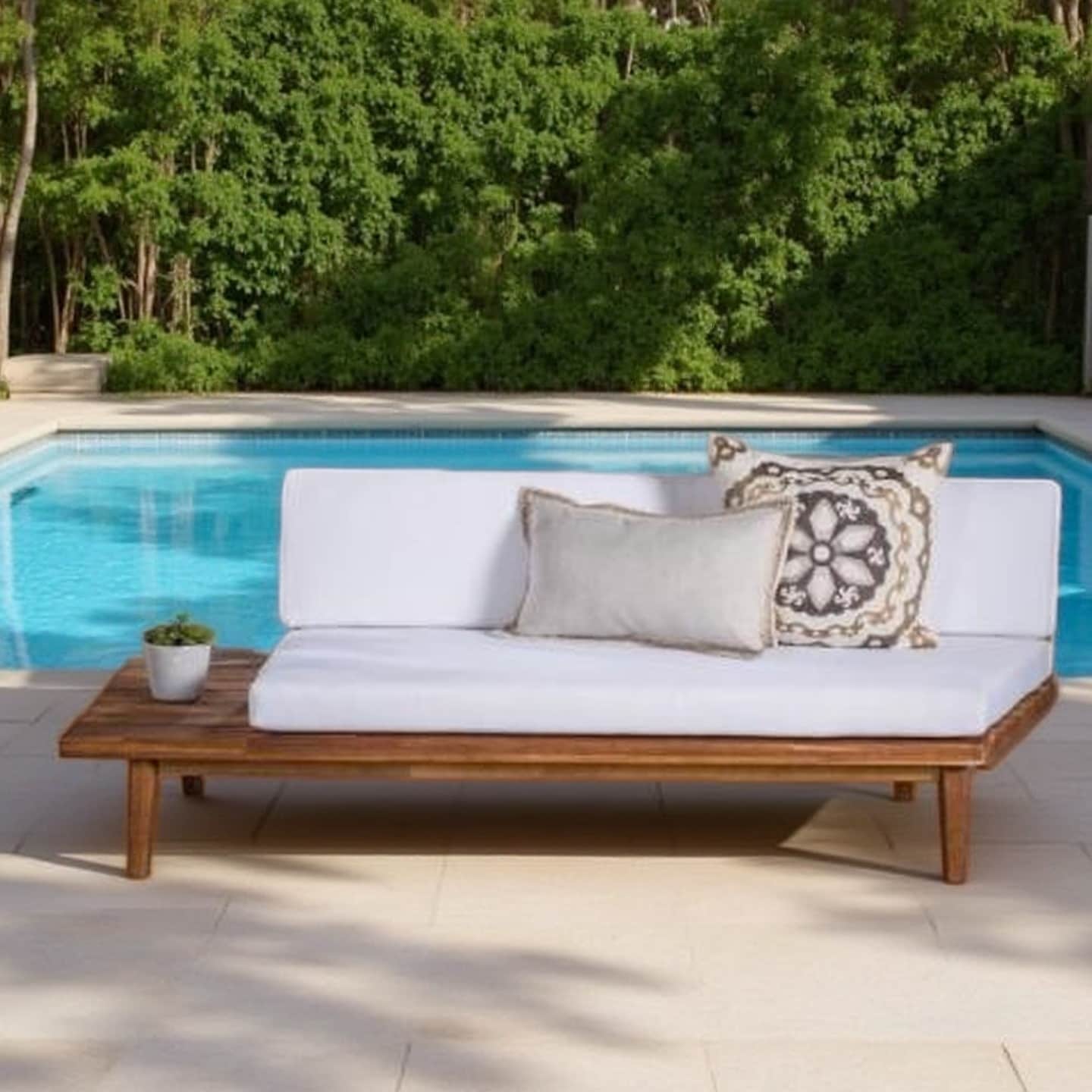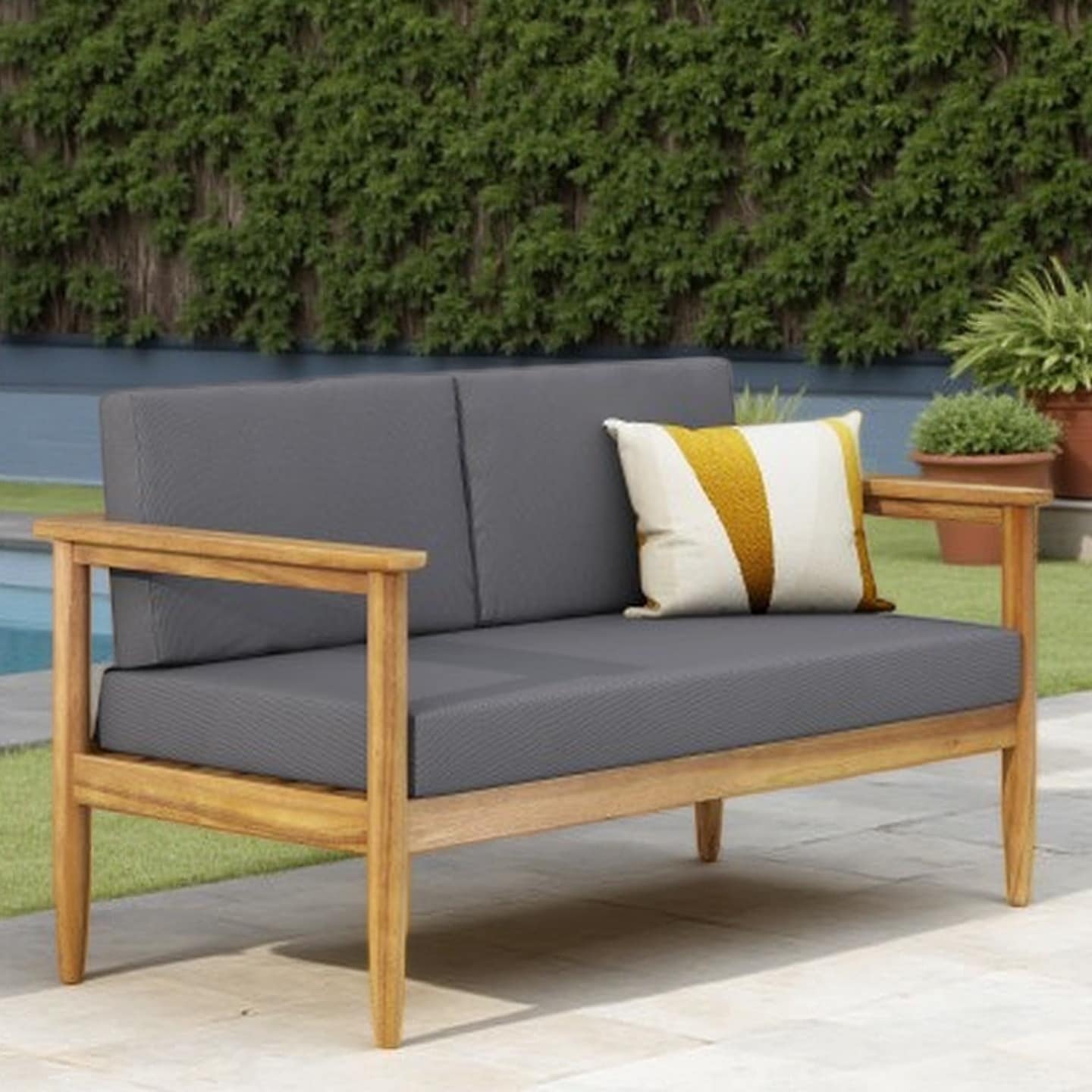 2-Seater Left Side Acacia Wood Sofa with Water-Resistant Cushions, Modern Indoor/Outdoor Lounge Seating