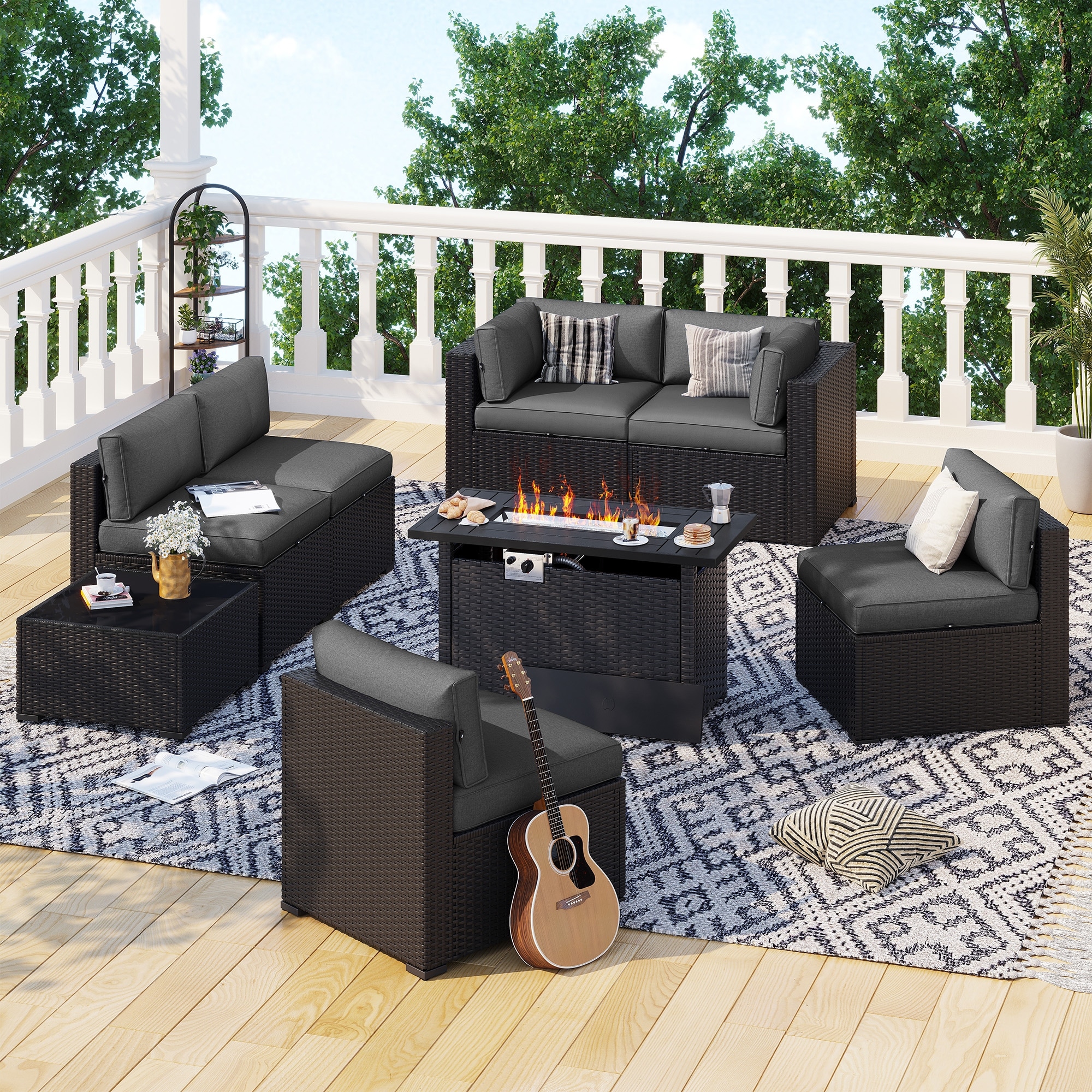 AOXUN Wicker Rattan Outdoor Sectional Sofa Set with Coffee Table