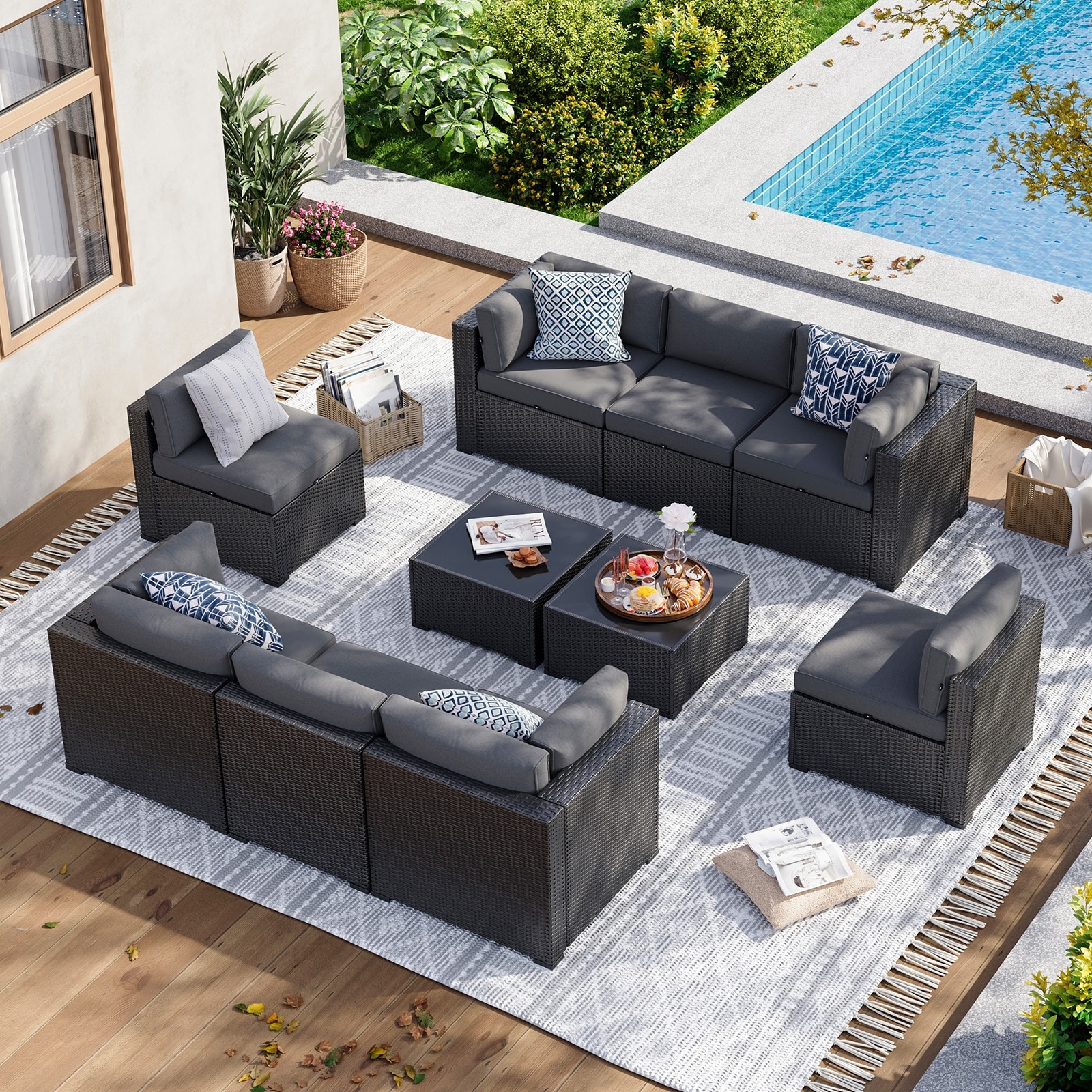 AOXUN Wicker Rattan Outdoor Sectional Sofa Set with Coffee Table