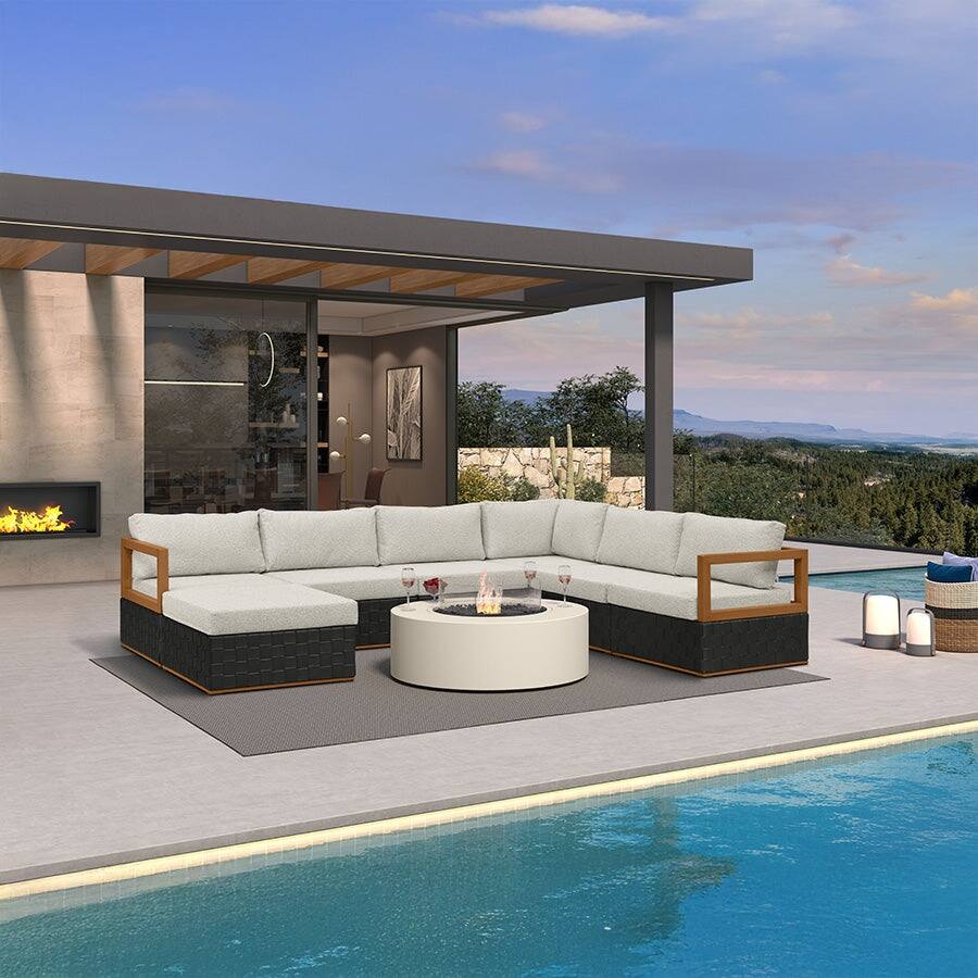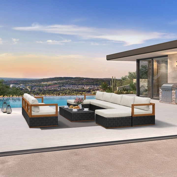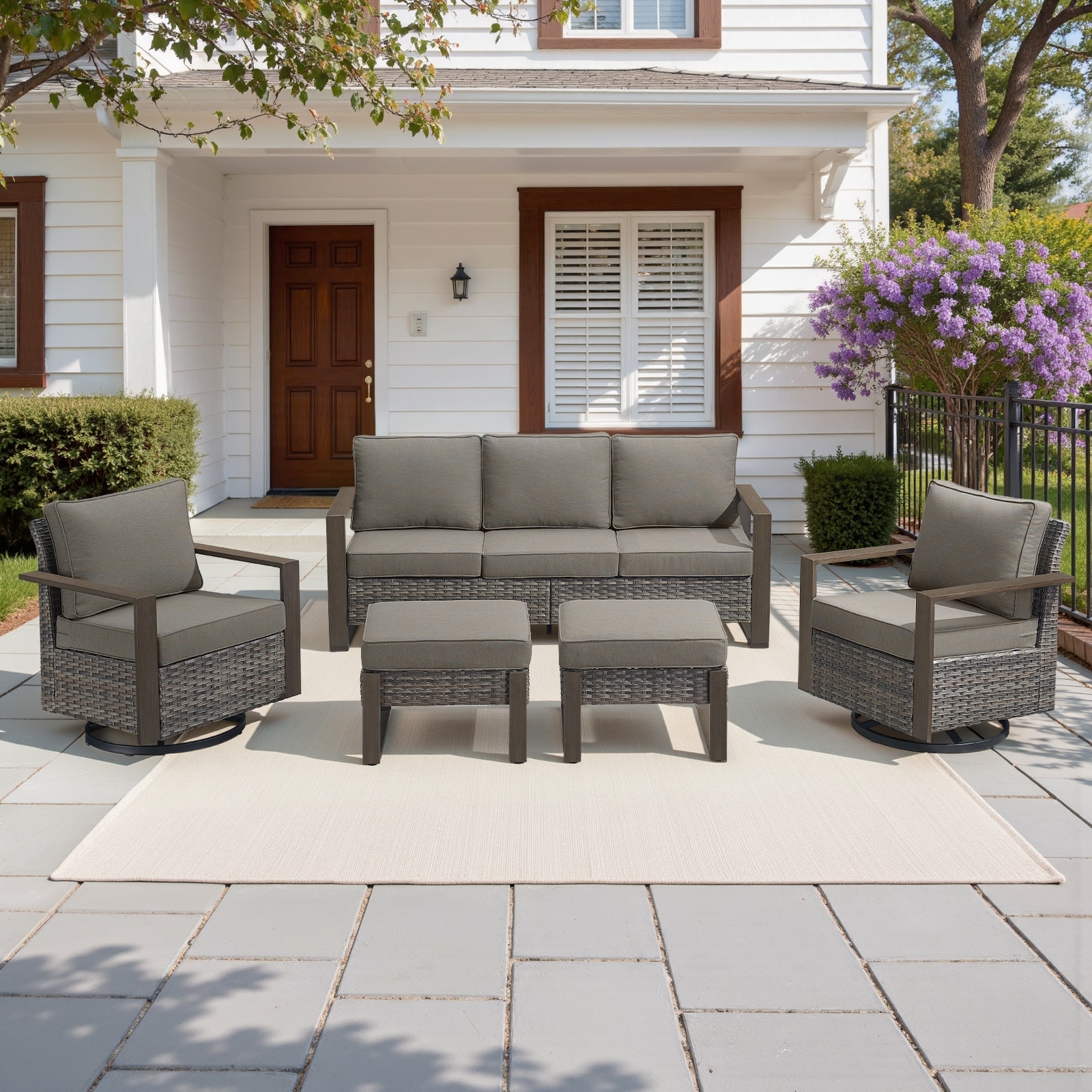 Pocassy Outdoor 6 Pieces 2-Seat Sofa Swivel Chairs Table Ottoman