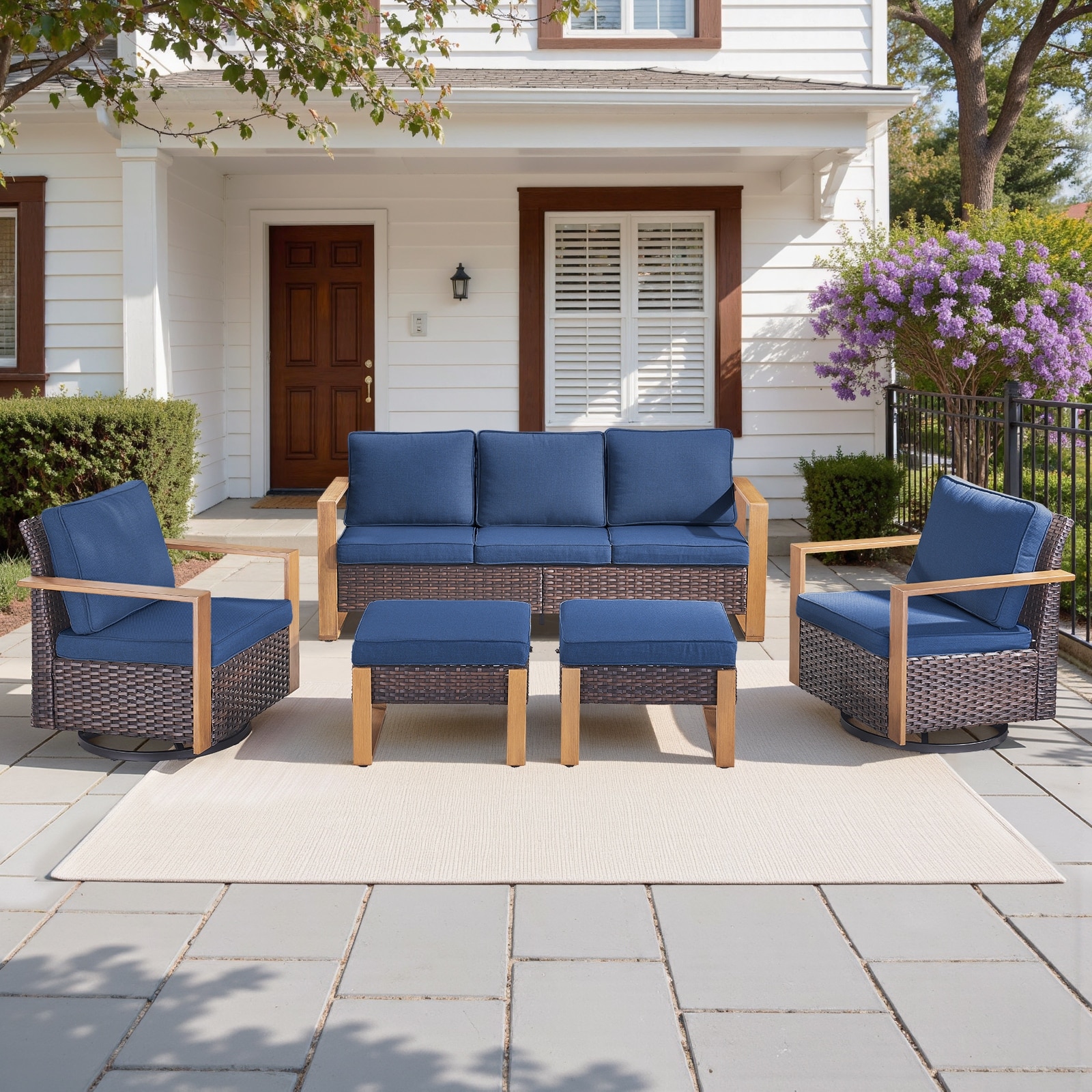 Pocassy Outdoor Sofa Patio Swivel Chair Funiture Set