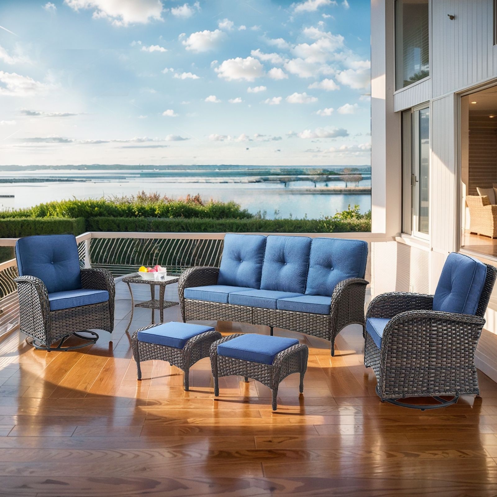 Pocassy 7PCS Outdoor 6Inch Sofa Swivel Chair Ottoman w/ Fire Table