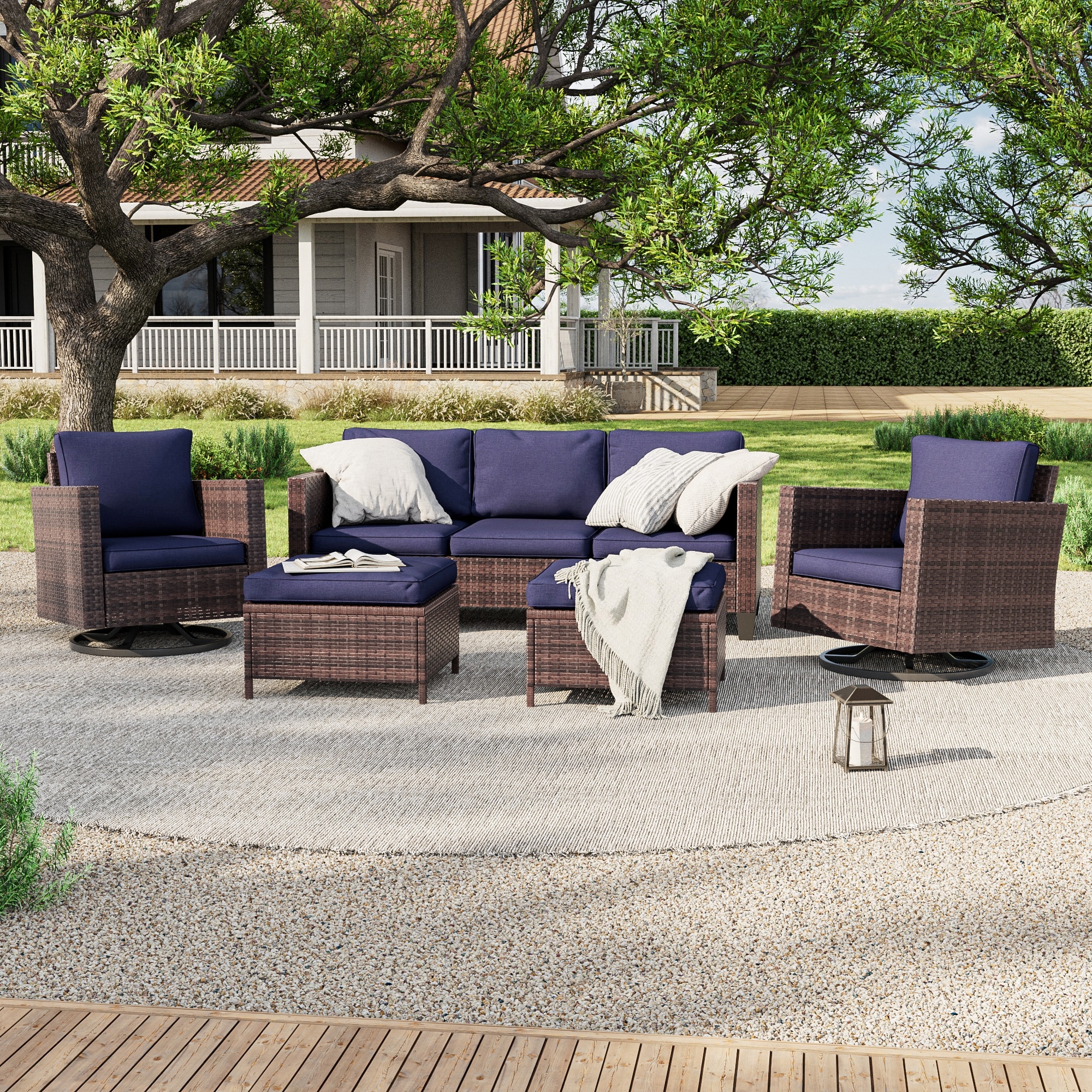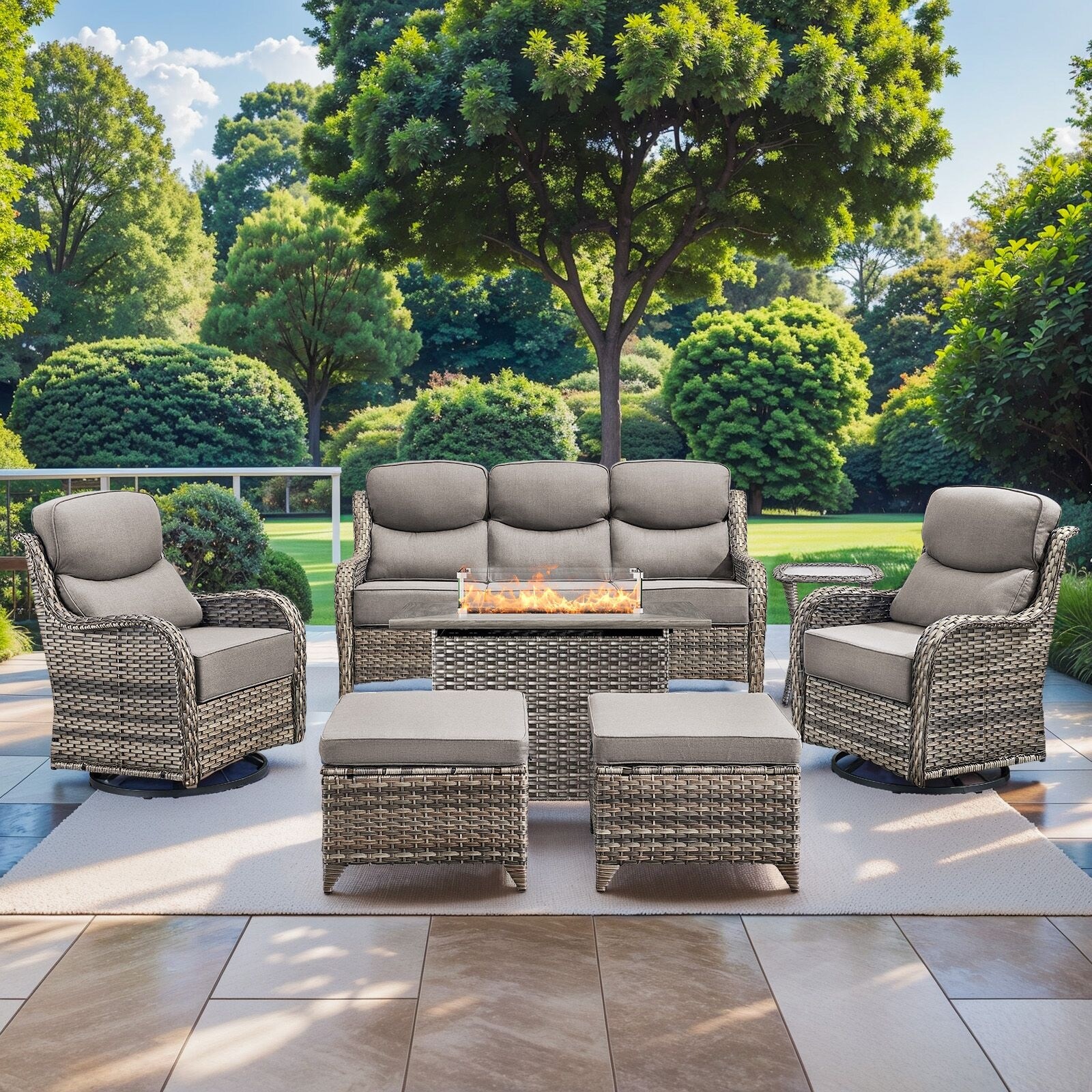 Pocassy 7PCS Outdoor 6Inch Sofa Swivel Chair Ottoman w/ Fire Table