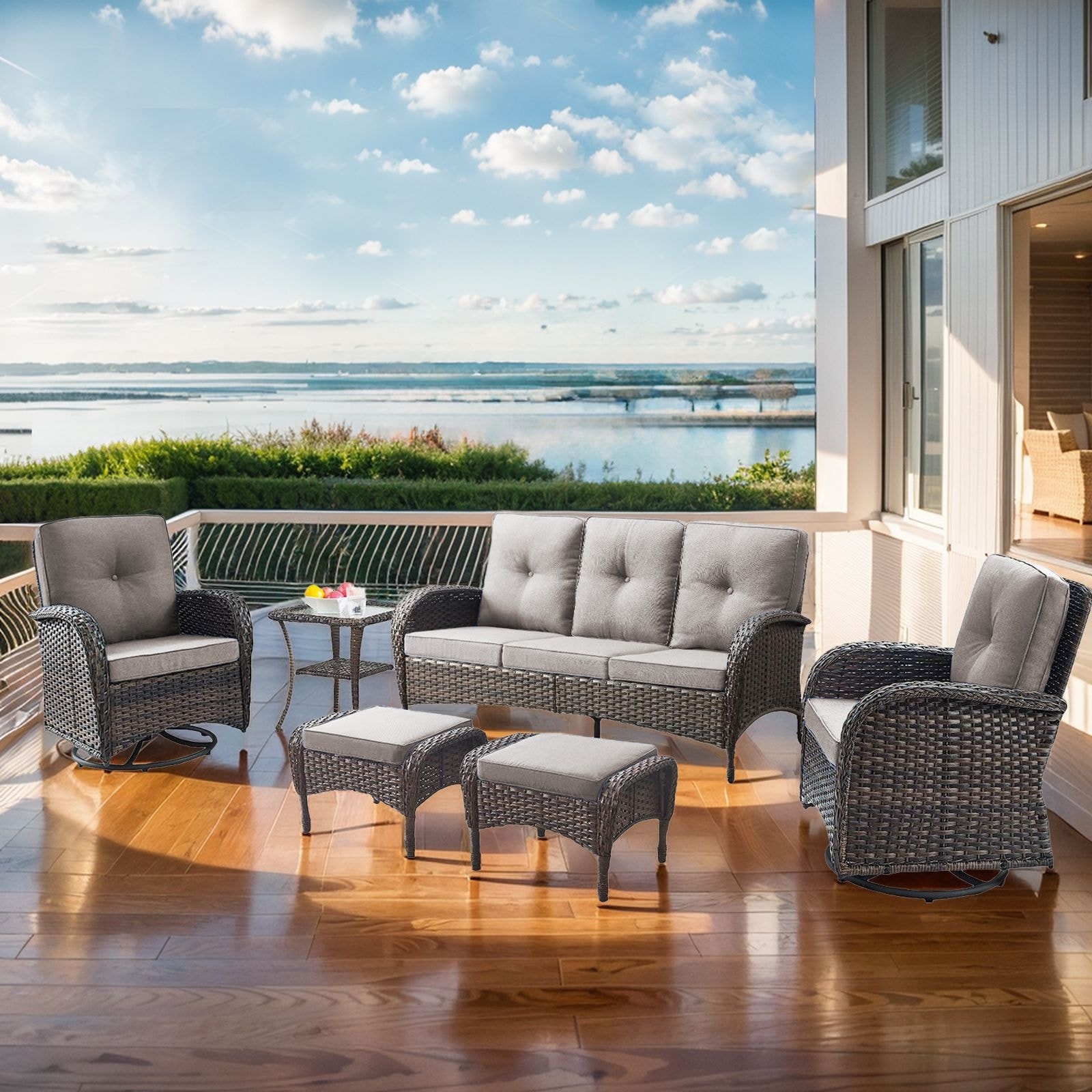 Pocassy Outdoor 30 In Fire Table with Sofa Swivel Chair Set