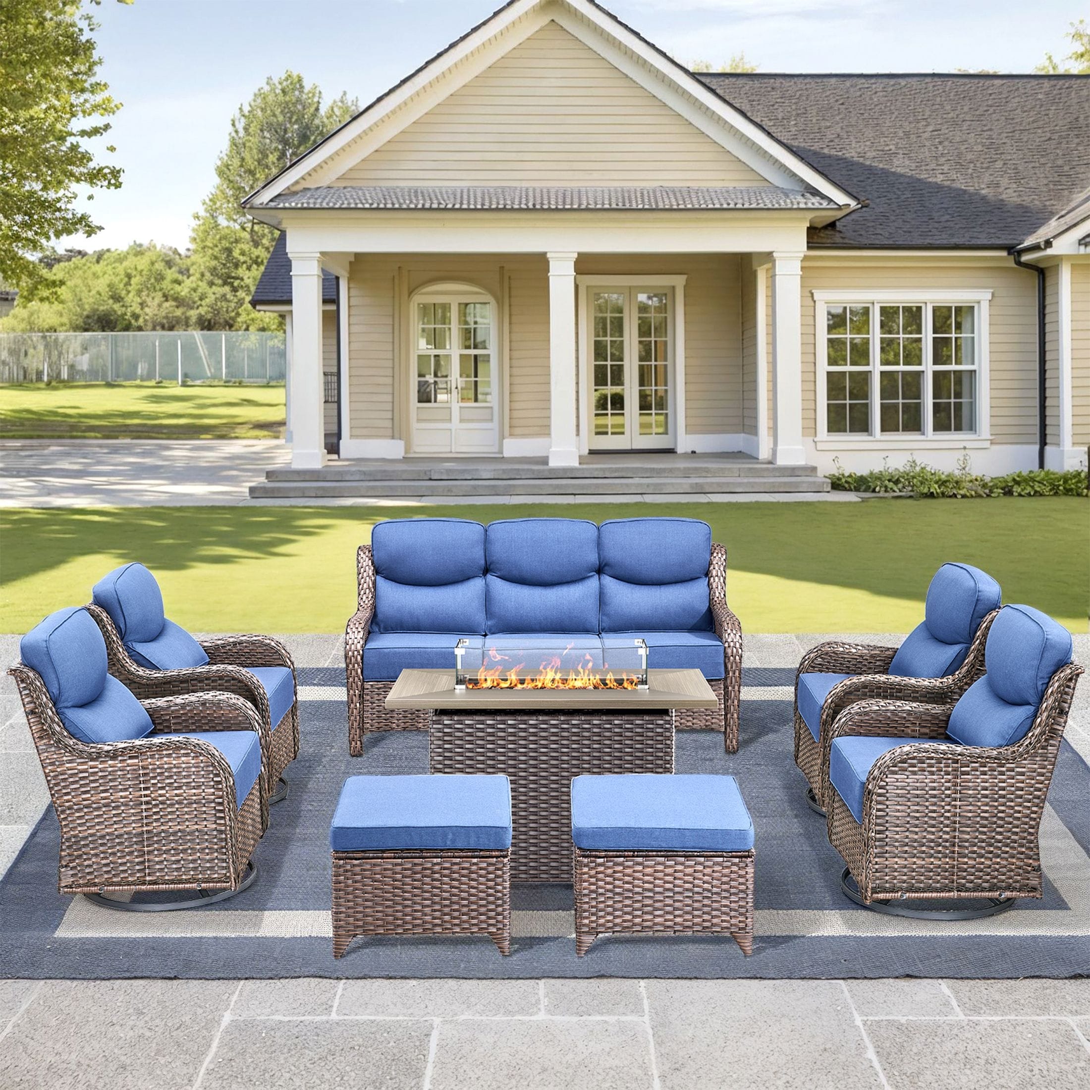 Pocassy 8PCS Outdoor 6Inch Sofa Swivel Chair Ottoman w/ Fire Table