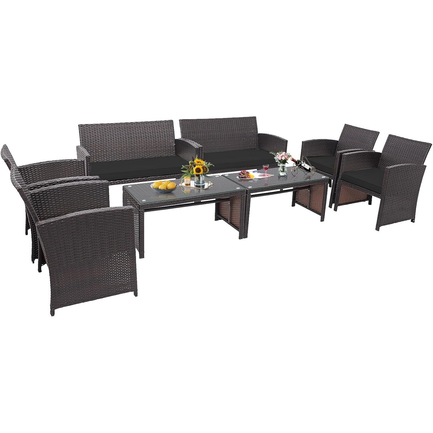 8 Piece Patio Furniture Set PE Rattan Sofa w/Cushion & Coffee Table