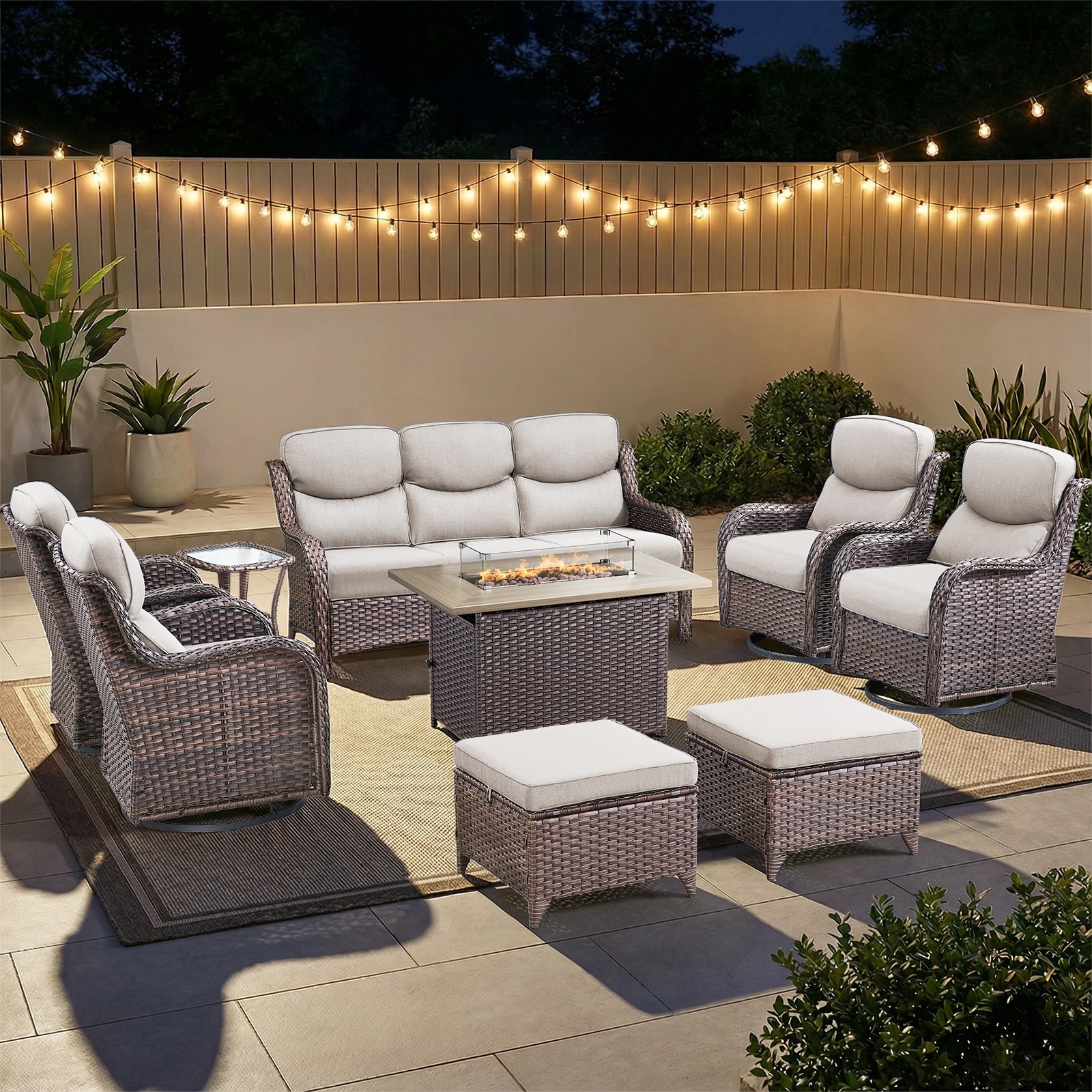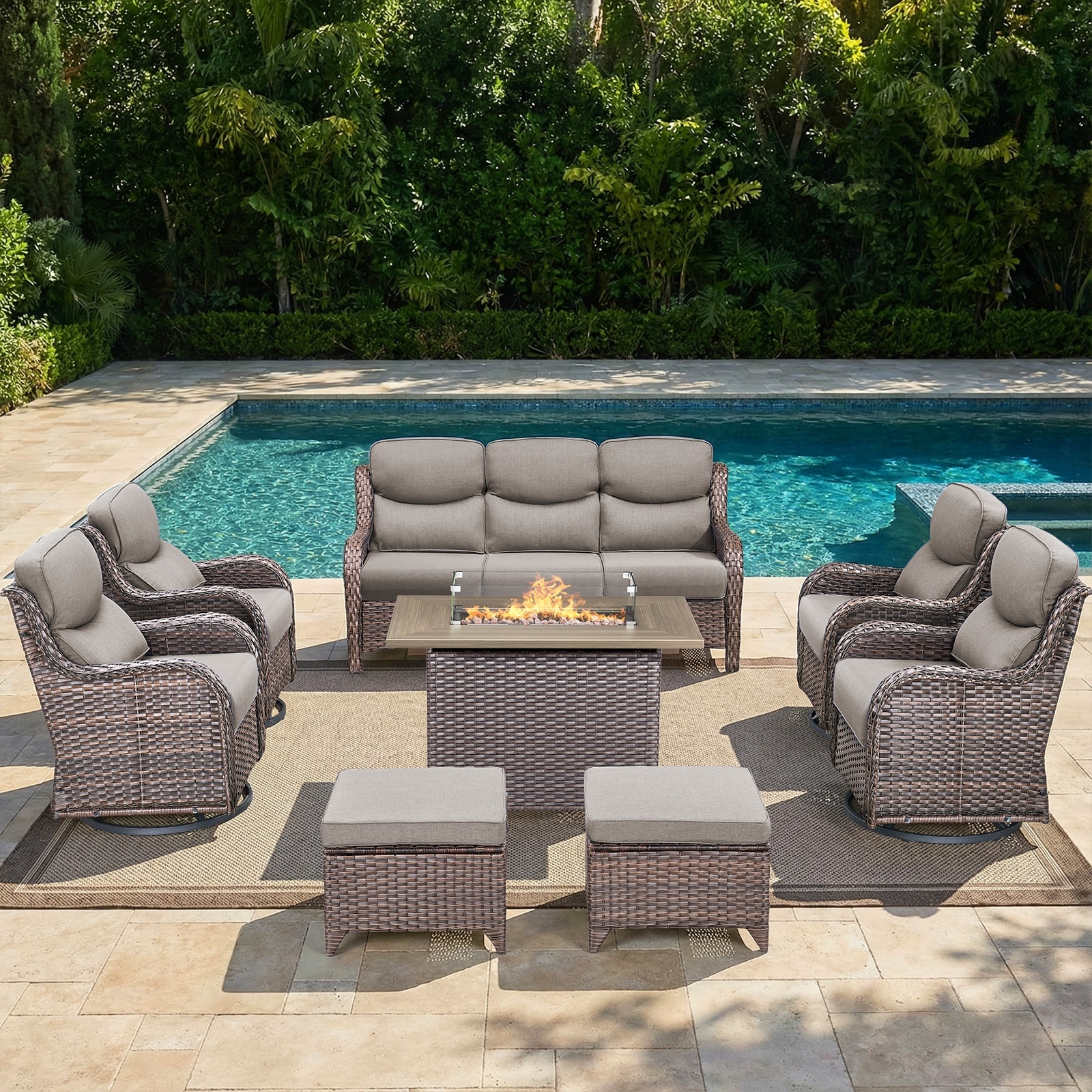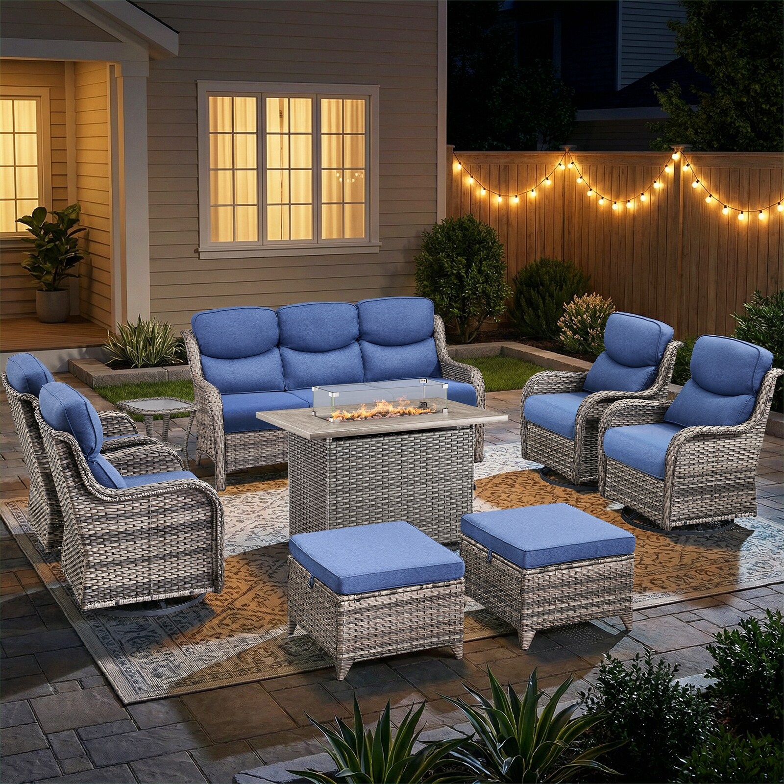 Pocassy Outdoor Fire Pit Sofa Swivel Chairs Ottoman Furniture Set