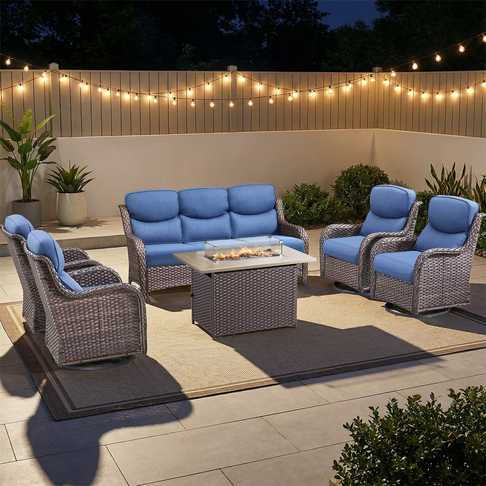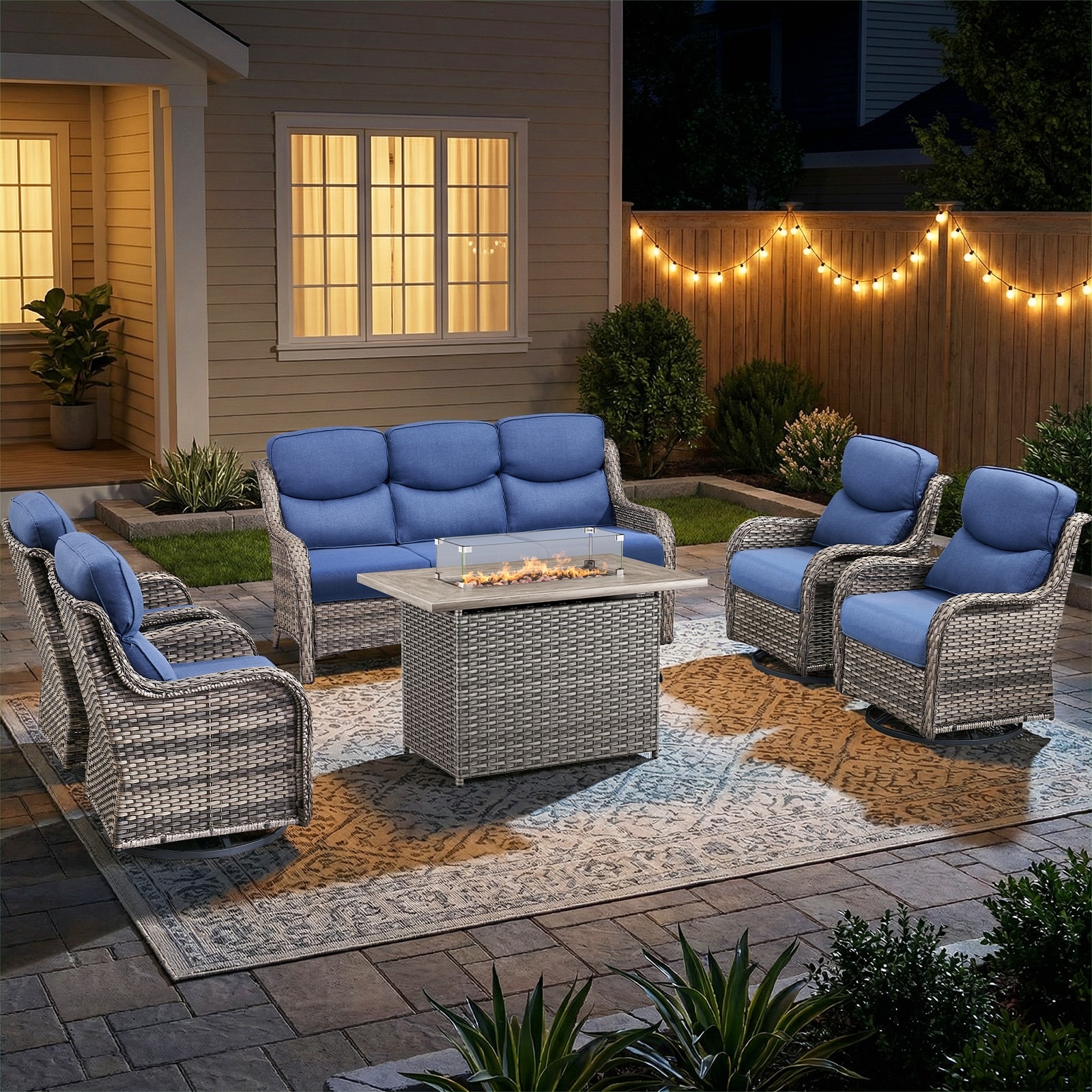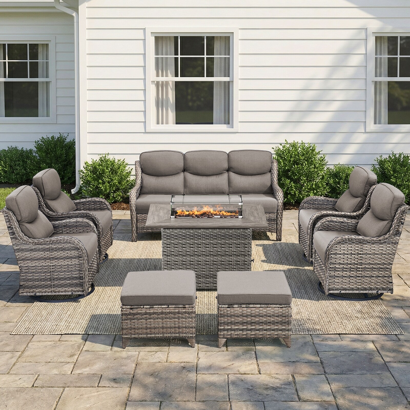 Pocassy Outdoor Fire Pit Sofa Swivel Chairs Ottoman Furniture Set