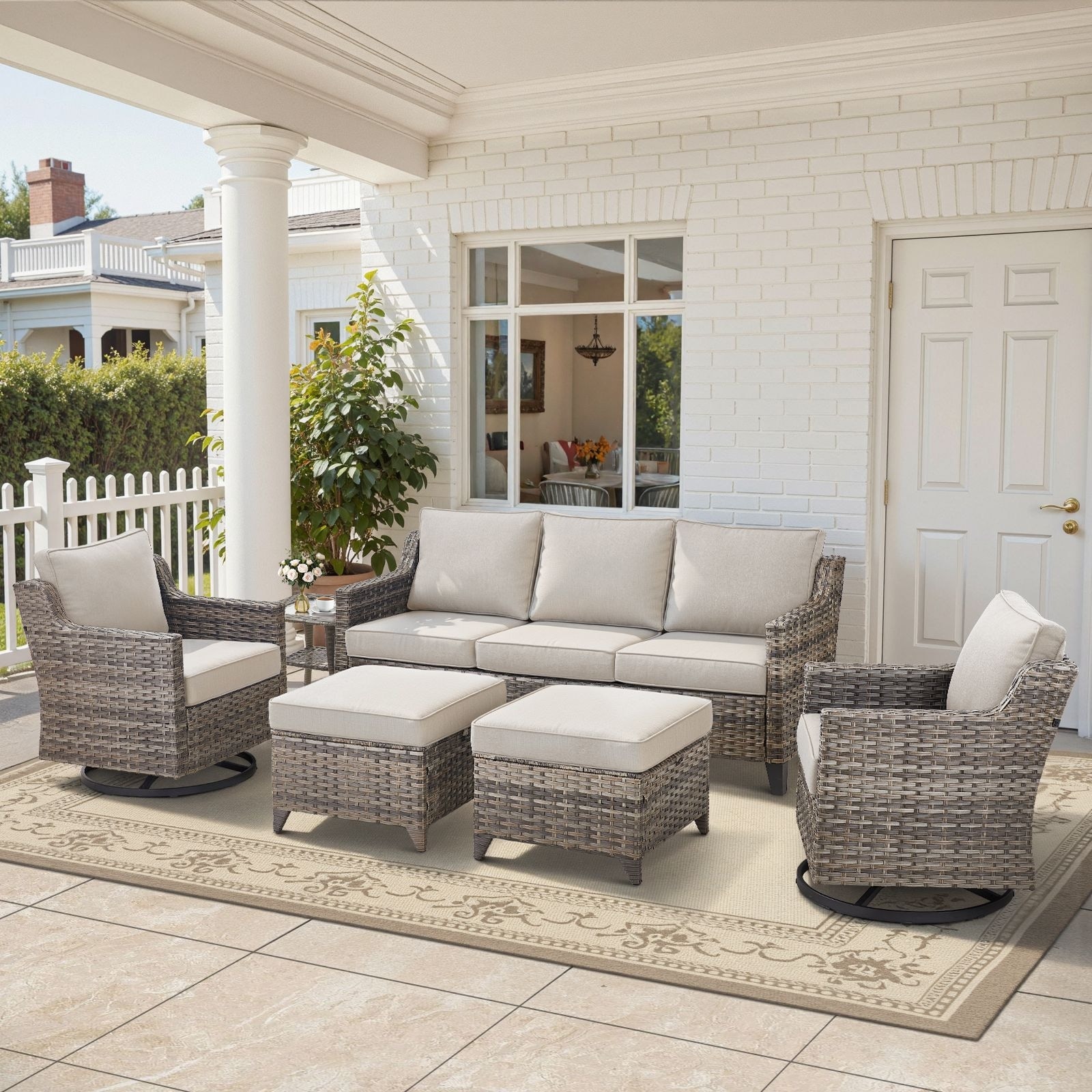 Gymojoy 5-Piece Outdoor Wicker Patio Swivel Chair & Ottoman Set, Rattan Coversation Set with Water Resistant Cushions