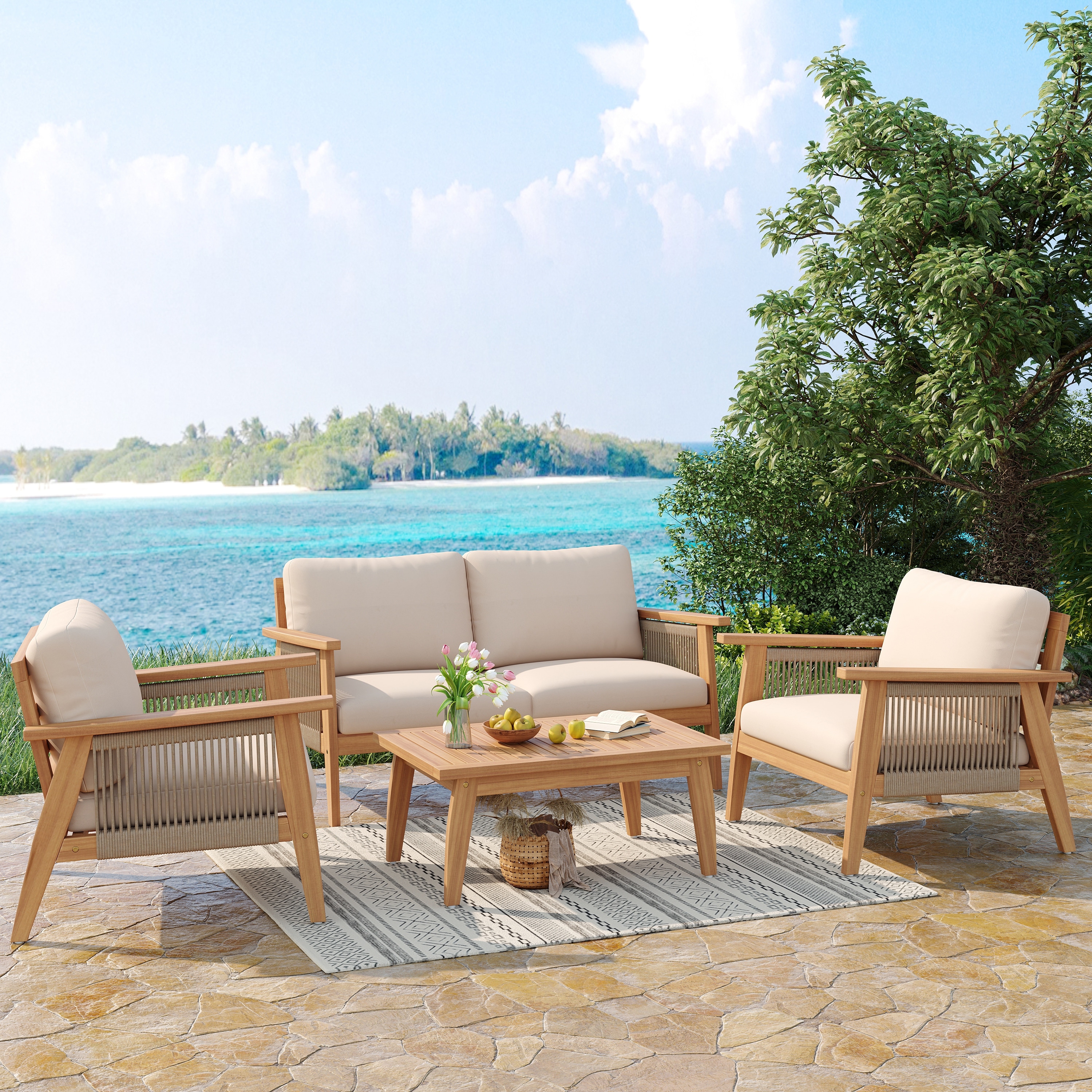 Christopher Knight Home - Riley Outdoor 4-piece Acacia Wood and Rope Sectional Patio Sofa Set