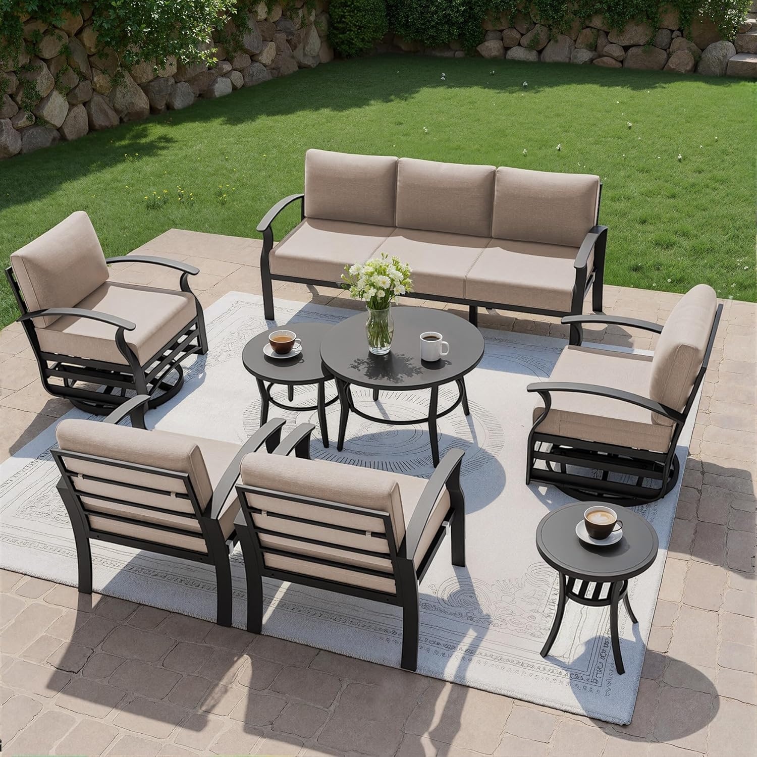 Gymojoy 8-Piece Patio Furniture Set with Swivel Glider Chairs, 6-Inch Ultra-Plush Cushions & Water-Resistant Olefin Fabric