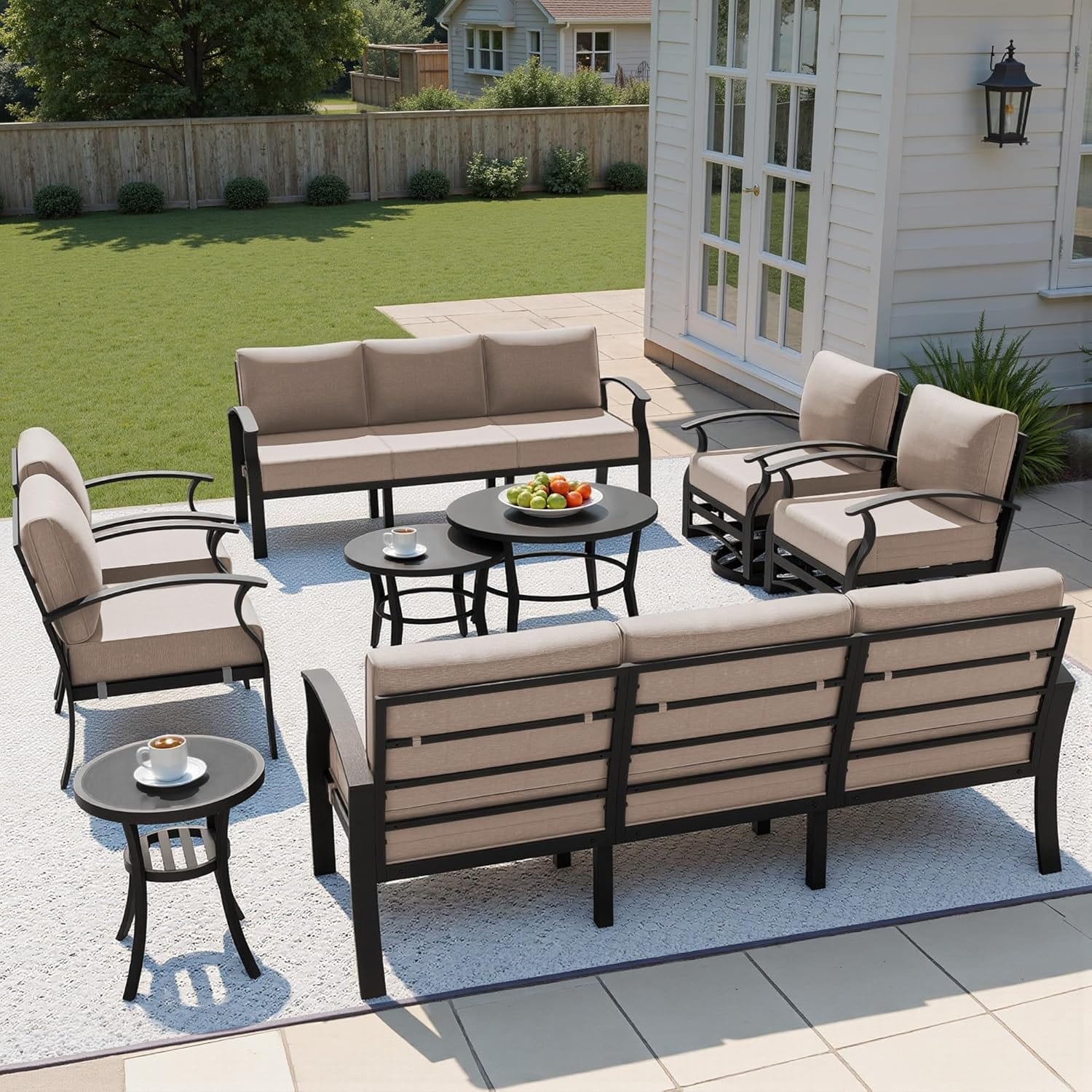 Kullavik Aluminum Outdoor Patio Sectional Sofa Set with Swivel Rocking Chairs and Coffee Table