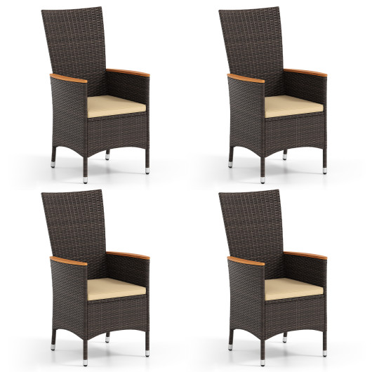Costway Patio Rattan Chairs Set of 4 Outdoor Wicker Dining Chairs with High Backrest-Beige