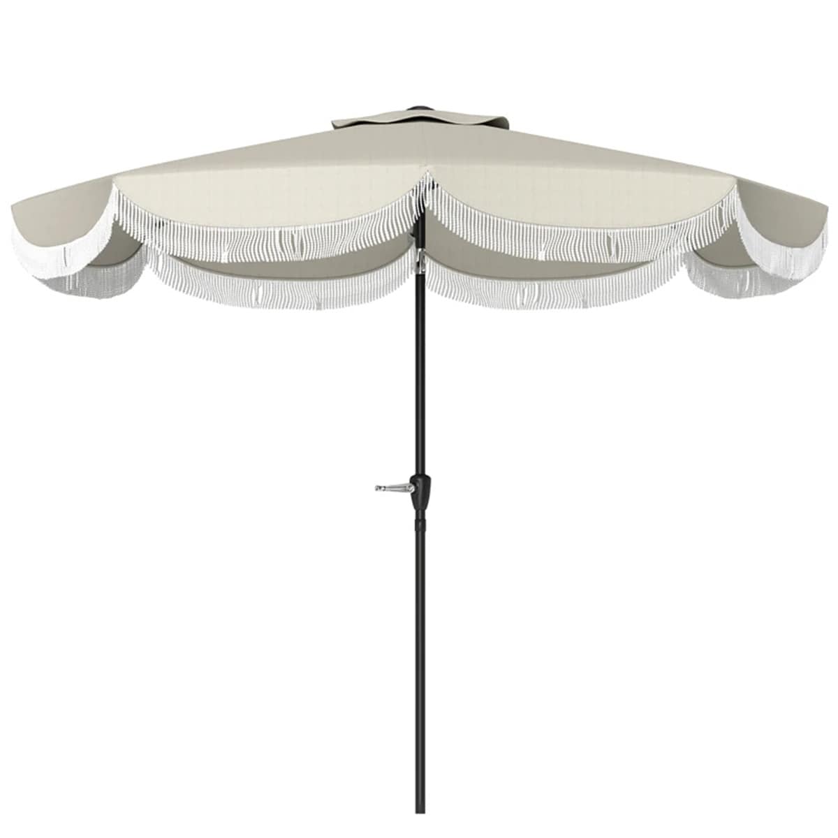 9ft Fringe Patio Umbrella Auto-Tilt, Crank, by JONATHAN Y