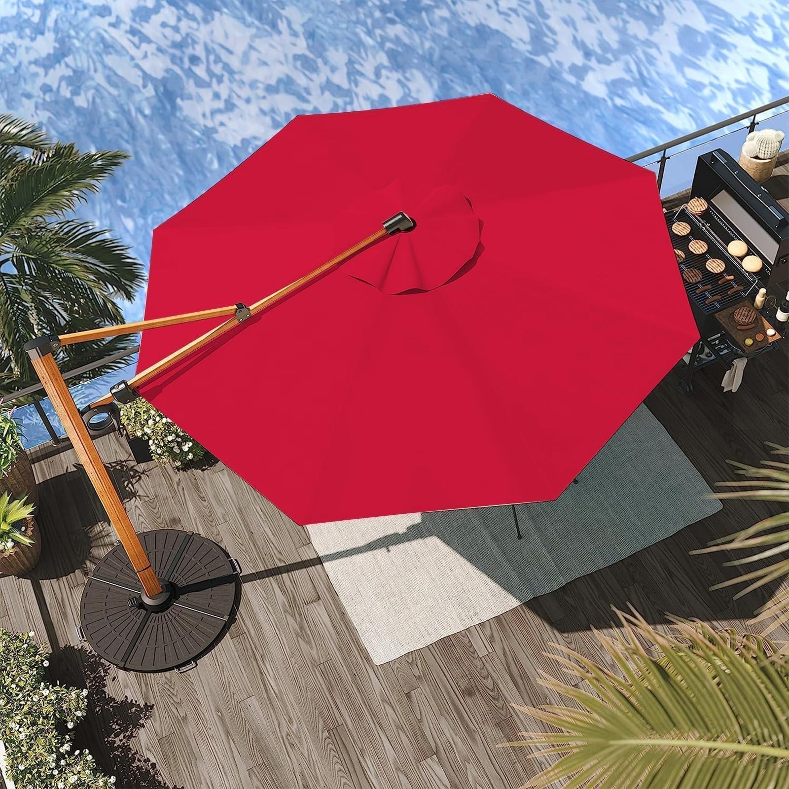 Ainfox 10 ft Cantilever Offset Outdoor Patio Umbrella with Base Stand Rotate and Tilt