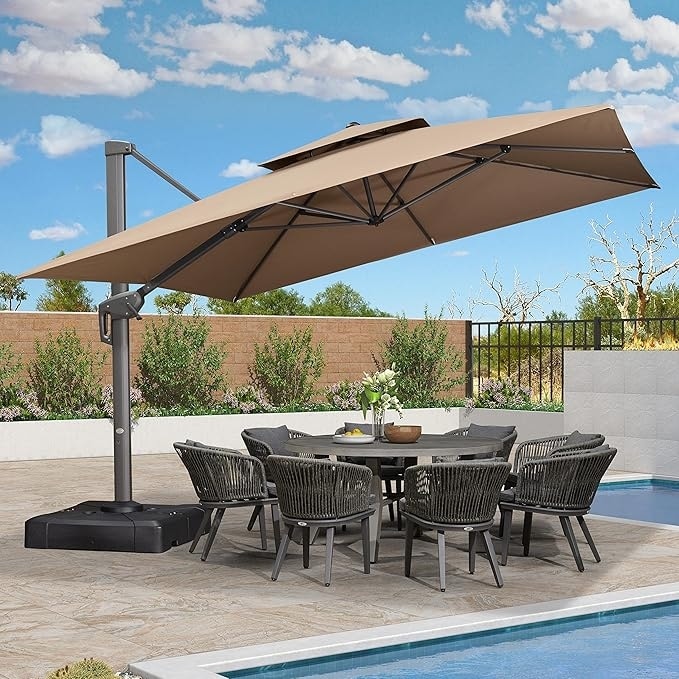 PURPLE LEAF Double Top10/11/12/13ft Round Patio Cantilever Umbrella in Wood Color