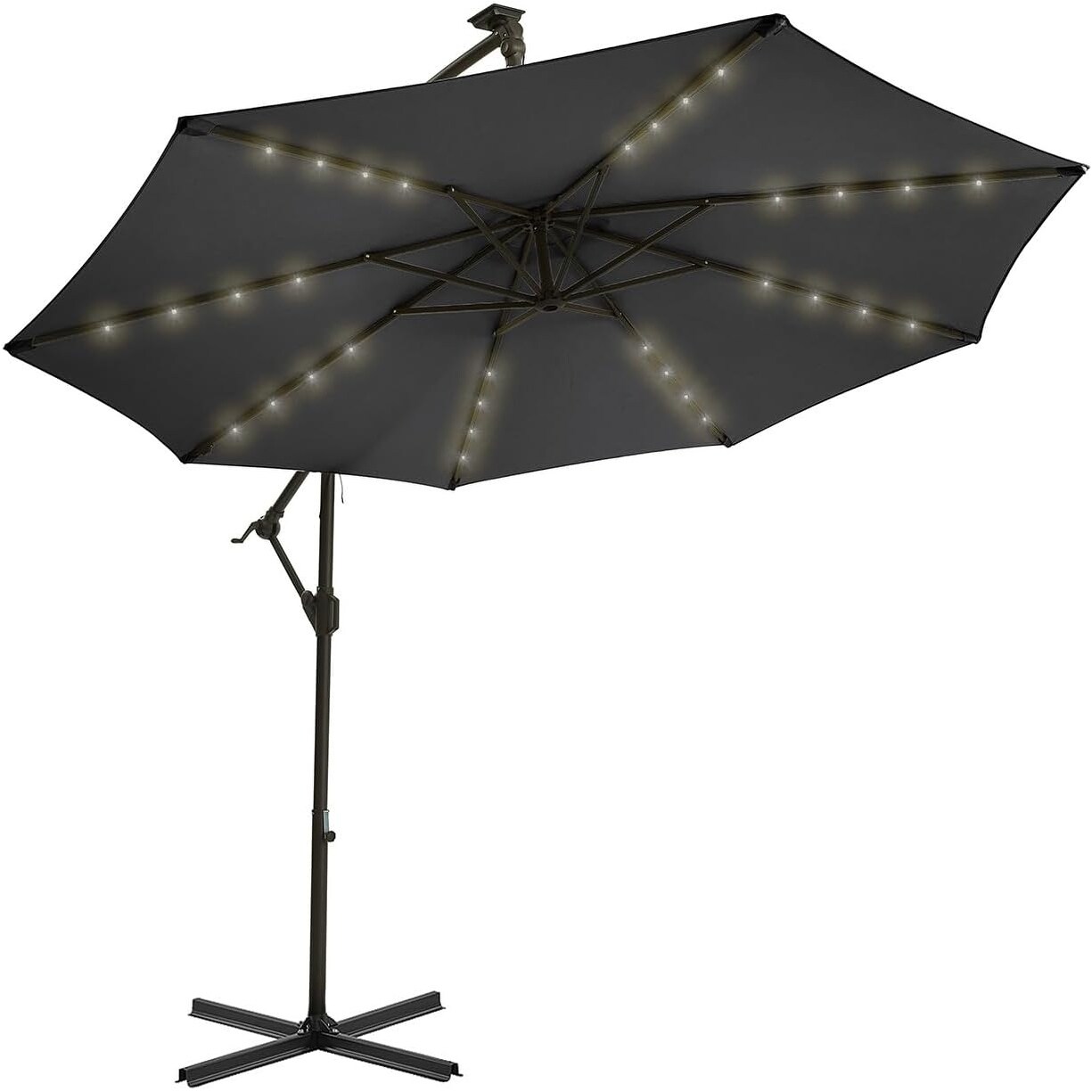 10ft Solar Lights Patio Umbrella, Cantilever Umbrella with Easy Lift and Tilt Adjustment