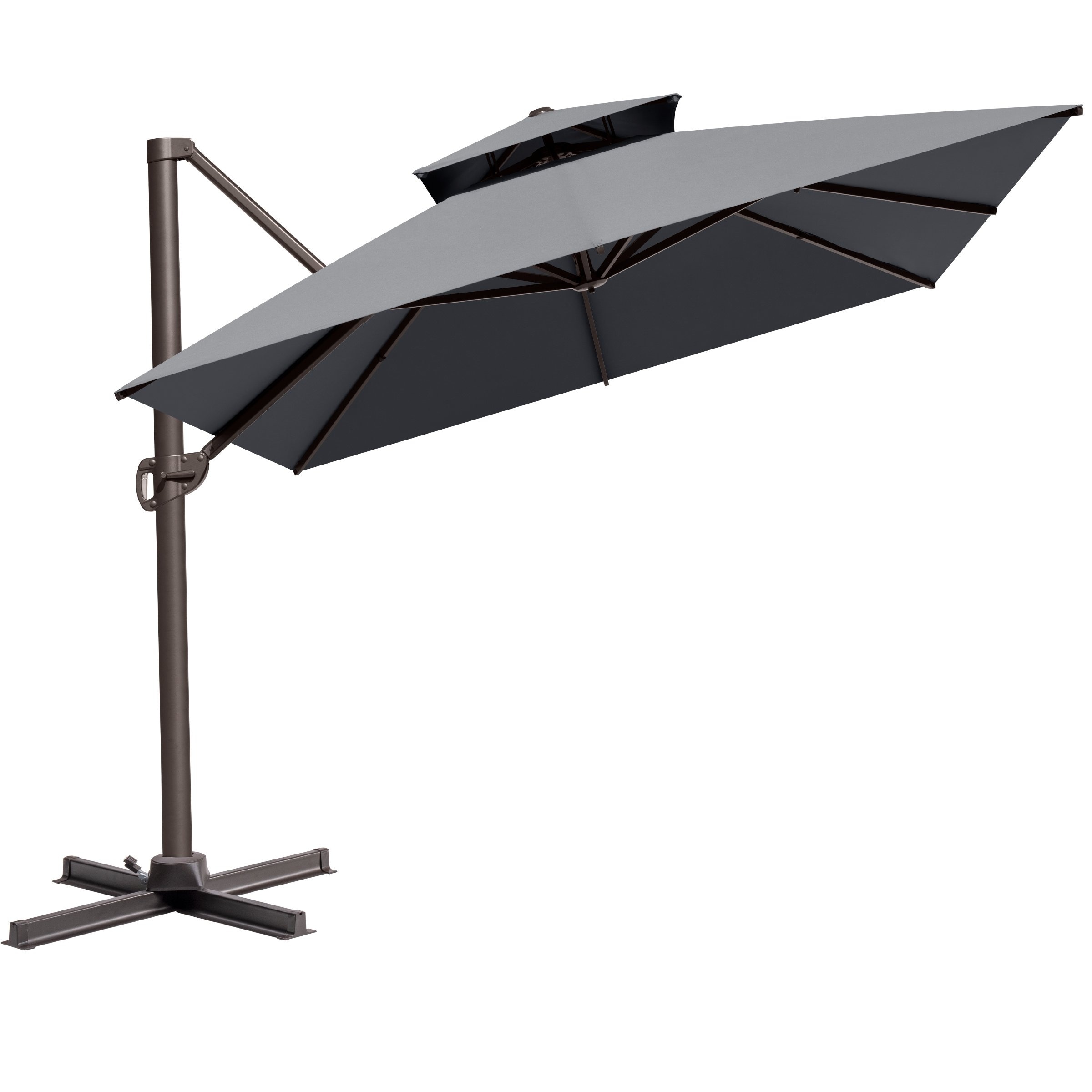 11 FT Square Outdoor Patio Aluminum Double Top Cantilever Umbrella with Rod Base