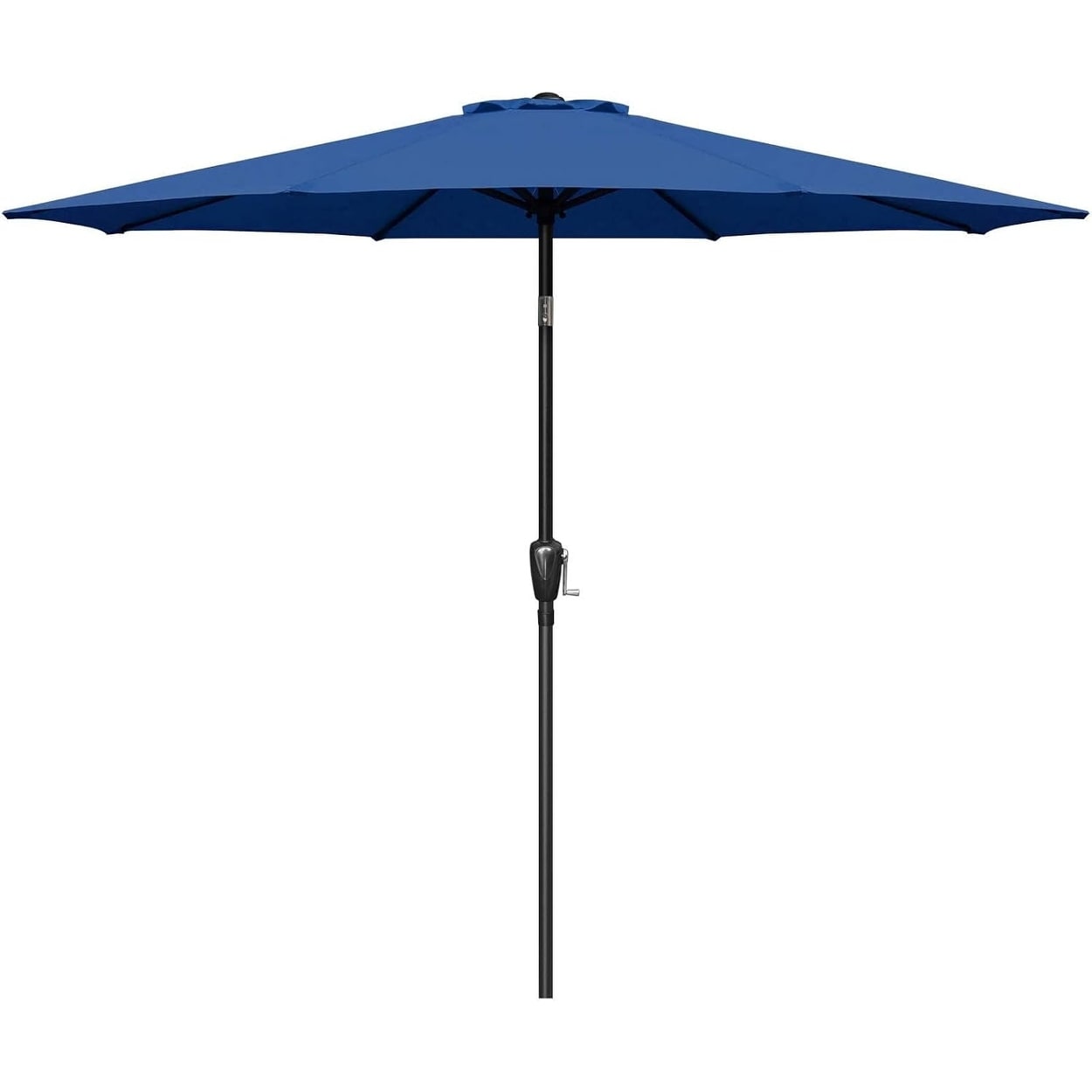 California Umbrella 7.5' Round Crank Lift Push Button Tilt Black Aluminum Patio Umbrella with Pacifica Pacific Blue Fabric
