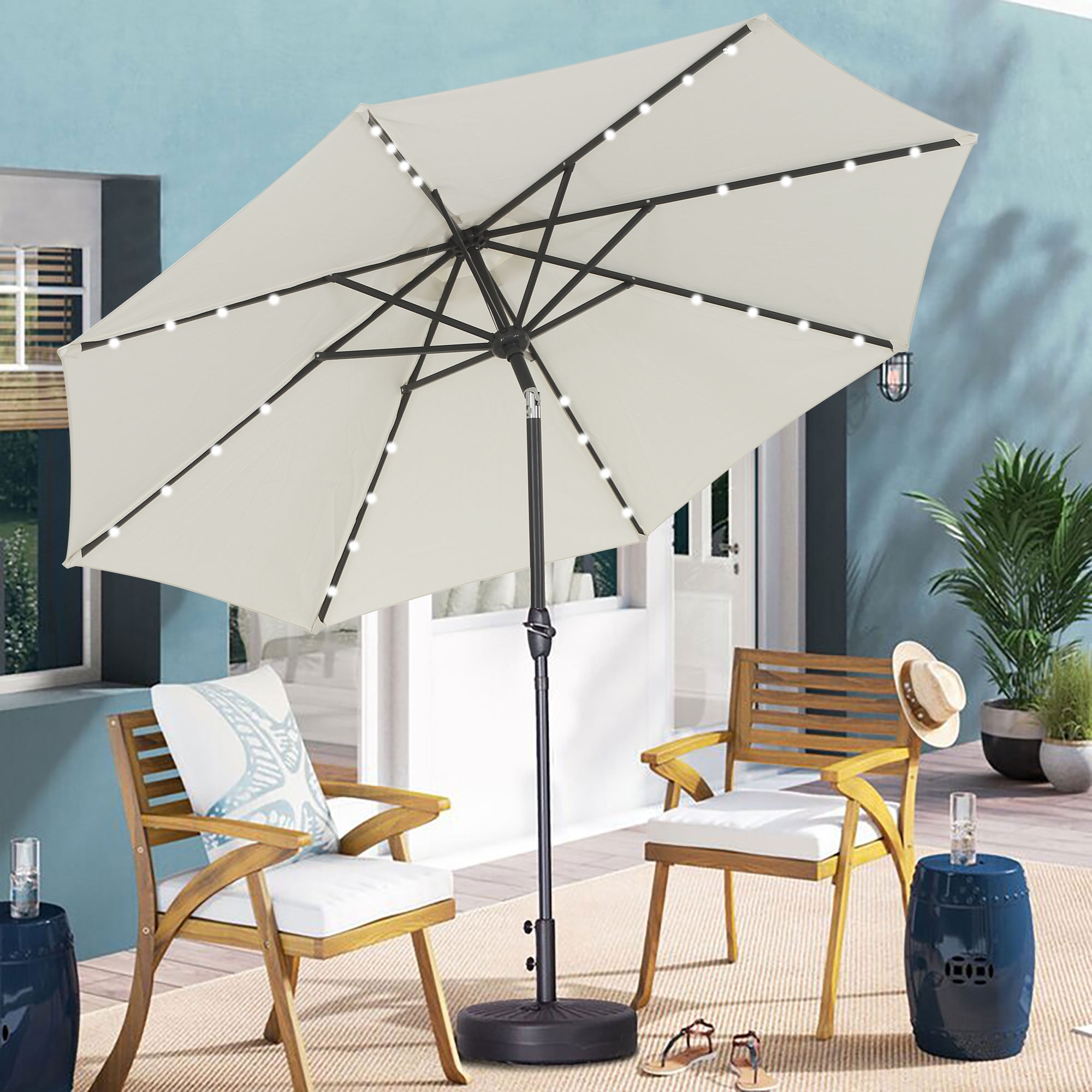 LIVOOSUN 10ft LED Patio Offset Umbrella With Cross Base