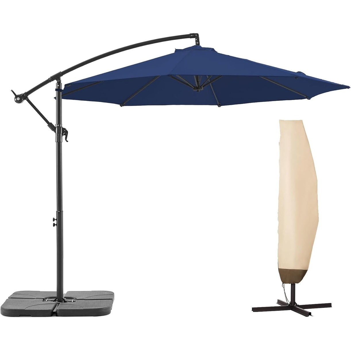 10 FT Patio Offset Umbrella with Infinite Tilt, Crank & Cross Base, UV Protection, Water-repellent Canopy, Navy Blue