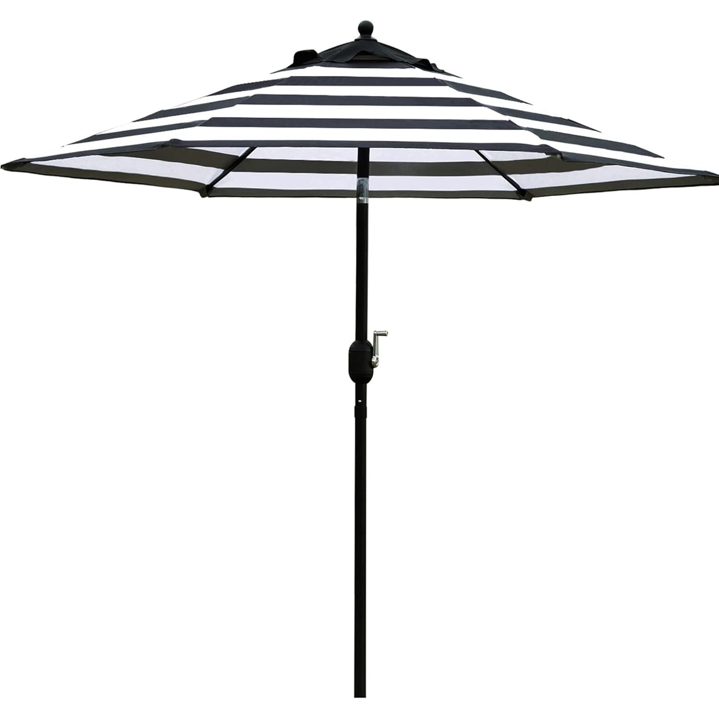 7.5' Patio Umbrella with Push Button Tilt and Crank, 6 Ribs, Black and White