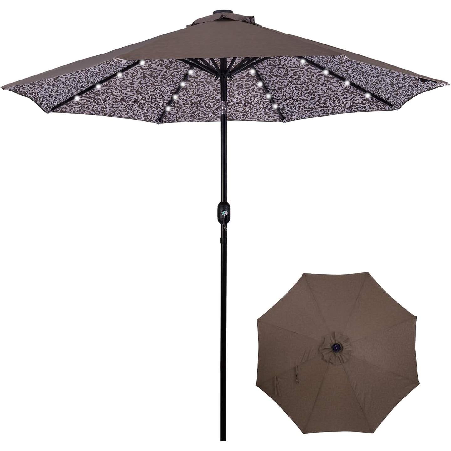 9ft Solar Patio Umbrella with 32 LED Lights, Tilt & Crank, Weather-Resistant Fabric