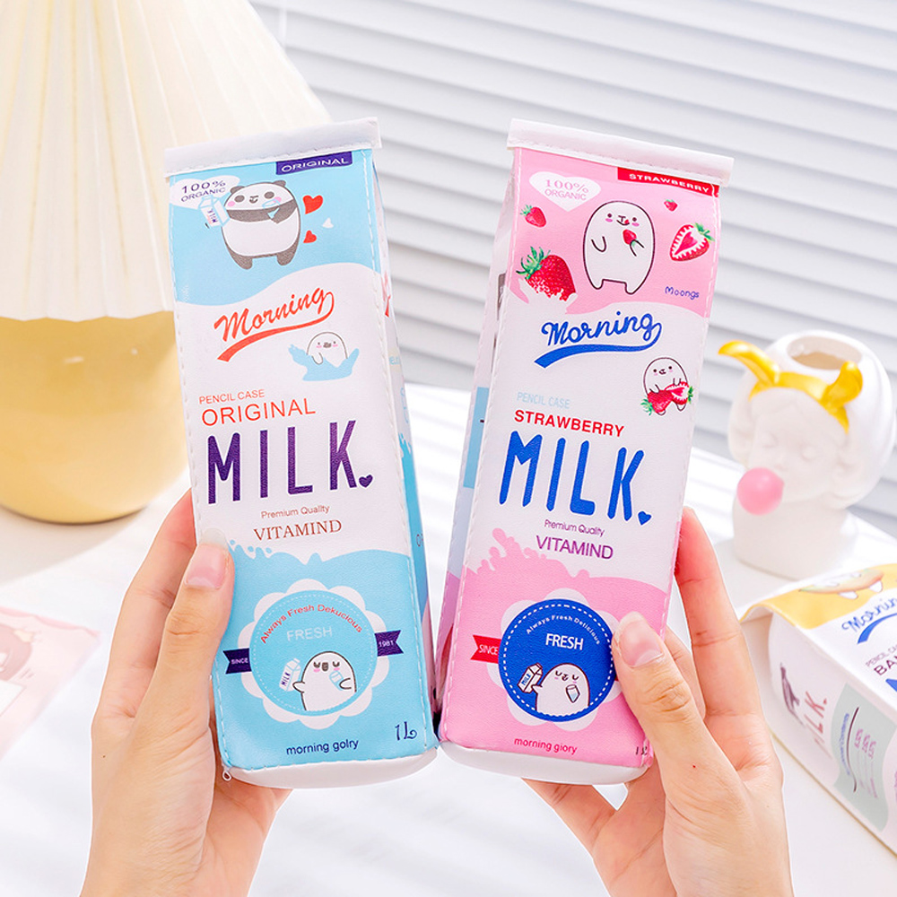 Creative Cartoon Pencil Case, Cute Milk Shape School Pencil Box, Unusual Pencil Cases For Boys And Girls blue
