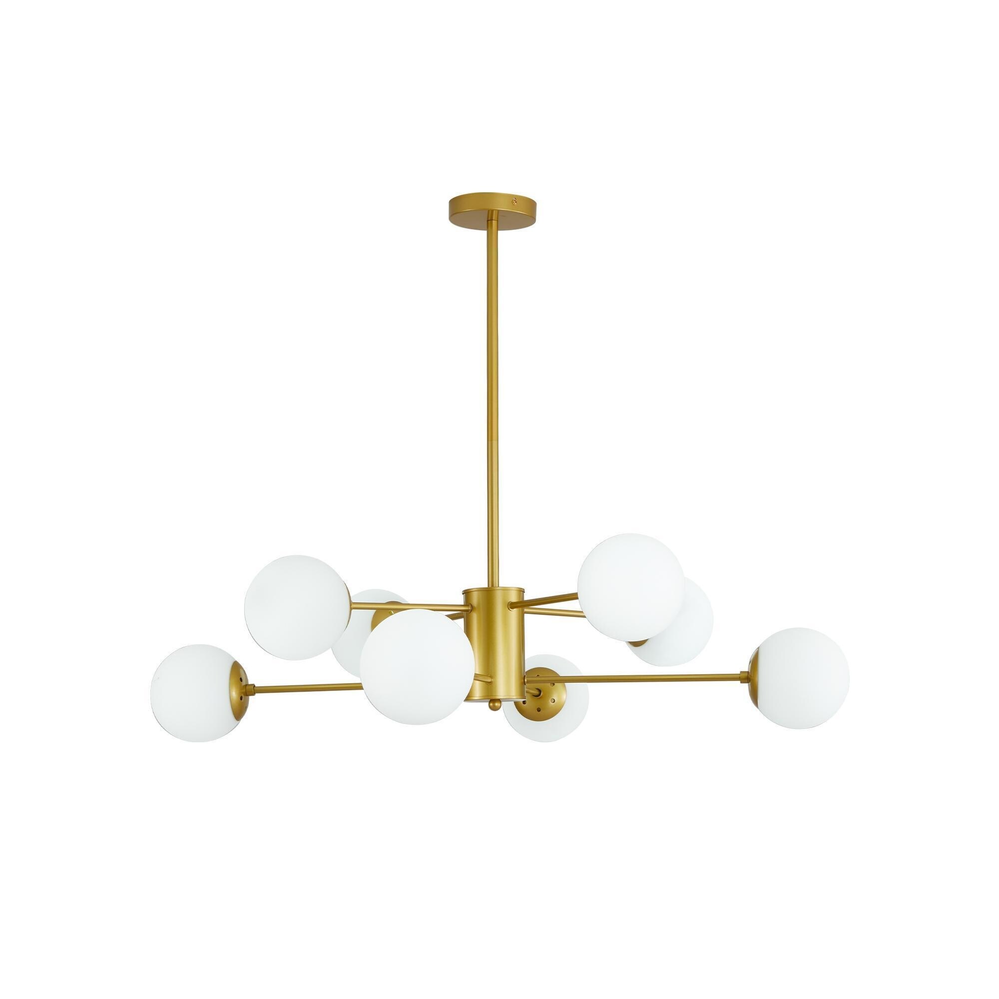 35" Modern 8-Light Gold Chandelier with White Glass Globe Shades