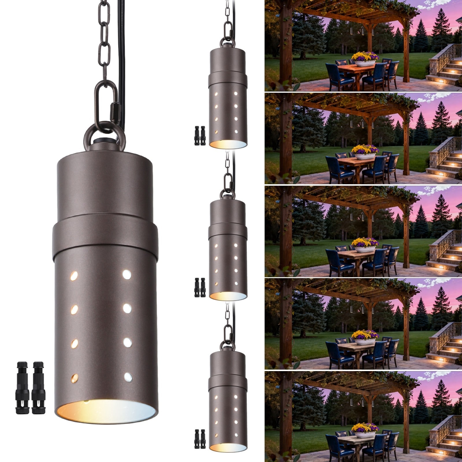 4W 5CCT 7.64″ Perforated Outdoor Pendant Light, Oil Rubbed Bronze - 4PACK