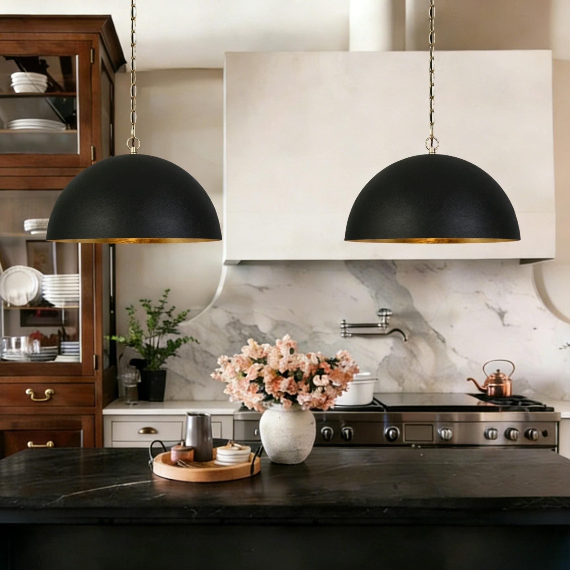 Modern Classic 1-Light Black Gold Pendant Light Fixture for Kitchen Dining Room - 17.7 " × 10.6 "