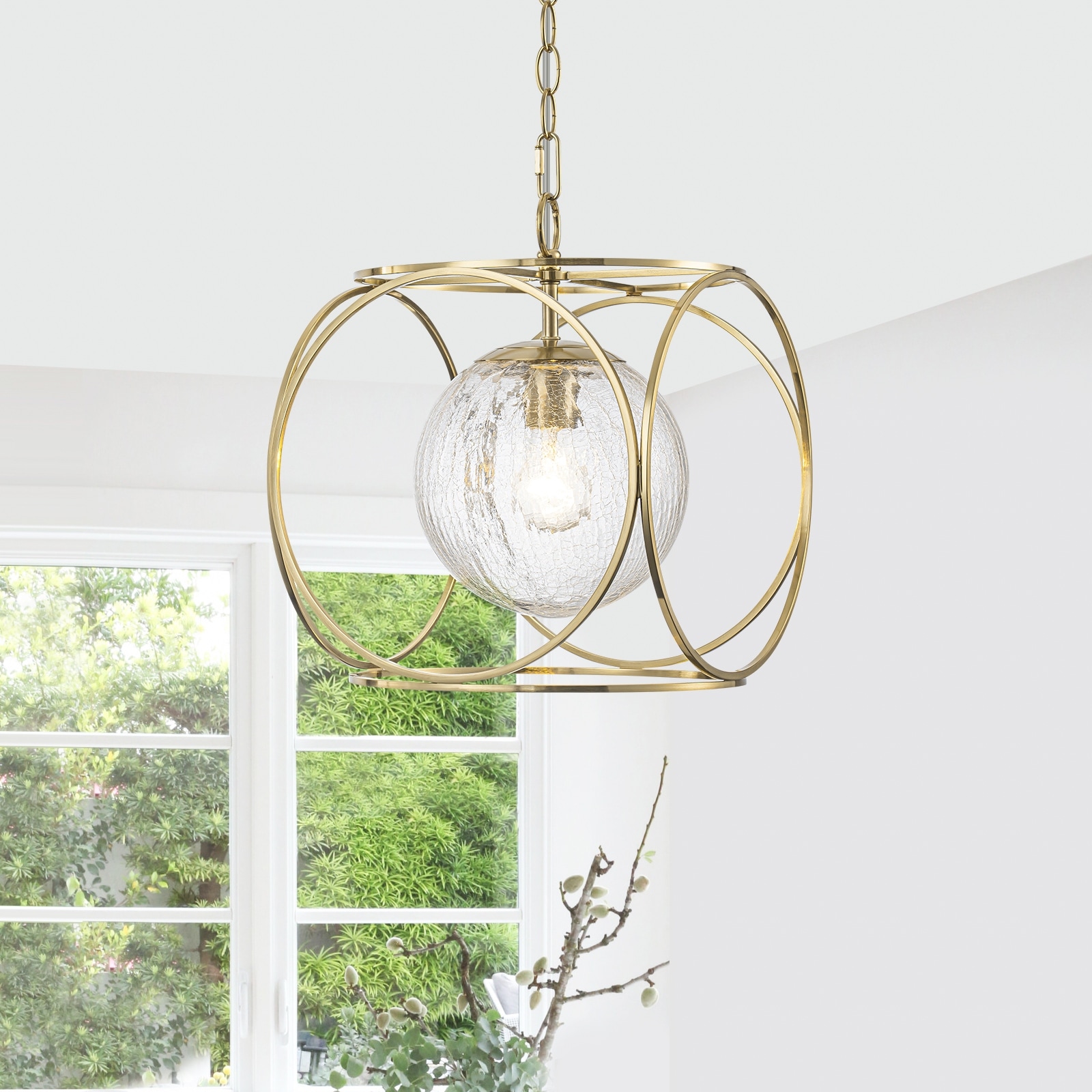 11.5" Metal Frame Clear Crackled Glass Globe Pendant Light Modern - Dia.11.5-in