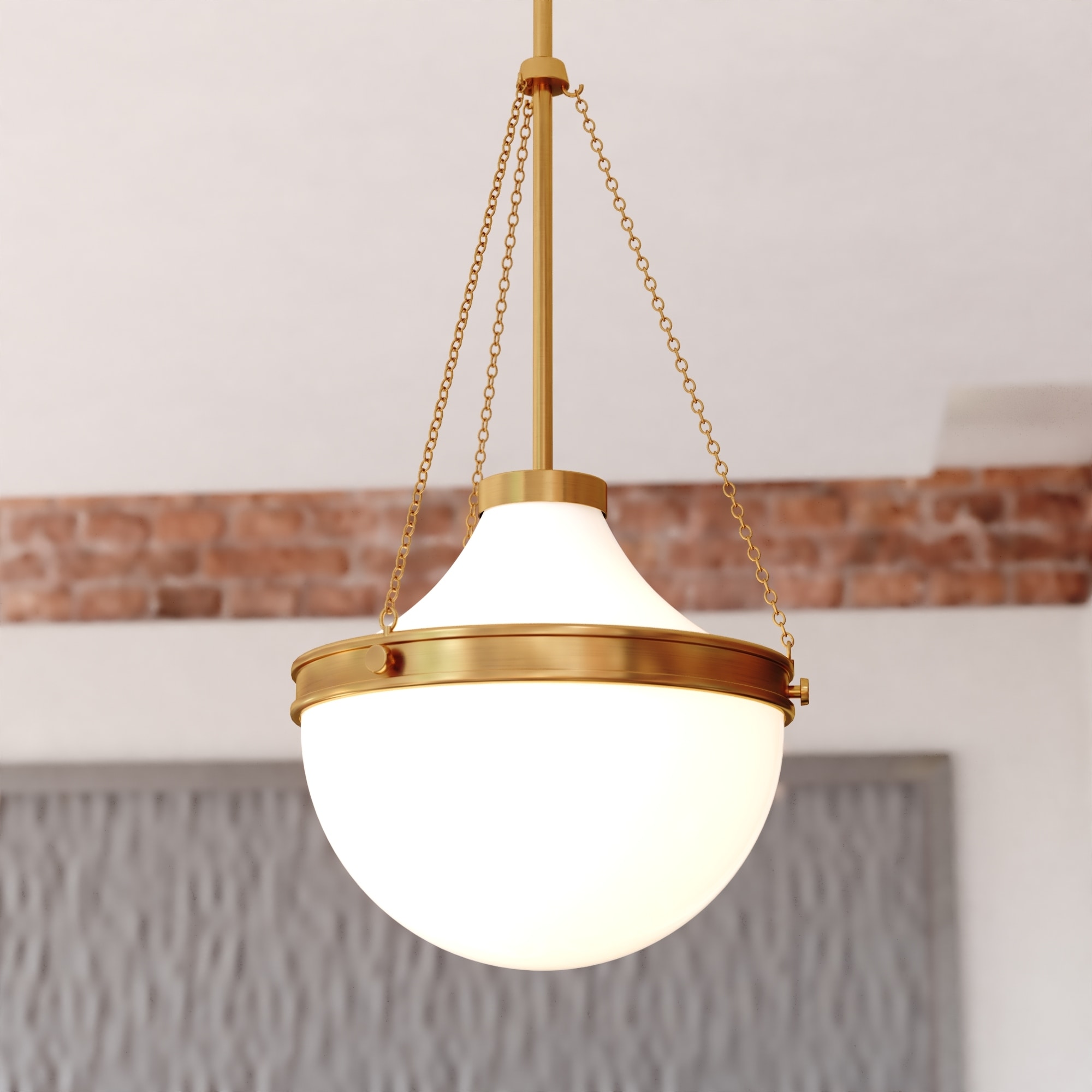 VAXCEL Lincoln 1-Light 12.75 in. Wide Globe Mini Pendant with White Milk Glass Shade, Adj Height Hanging Ceiling Fixture