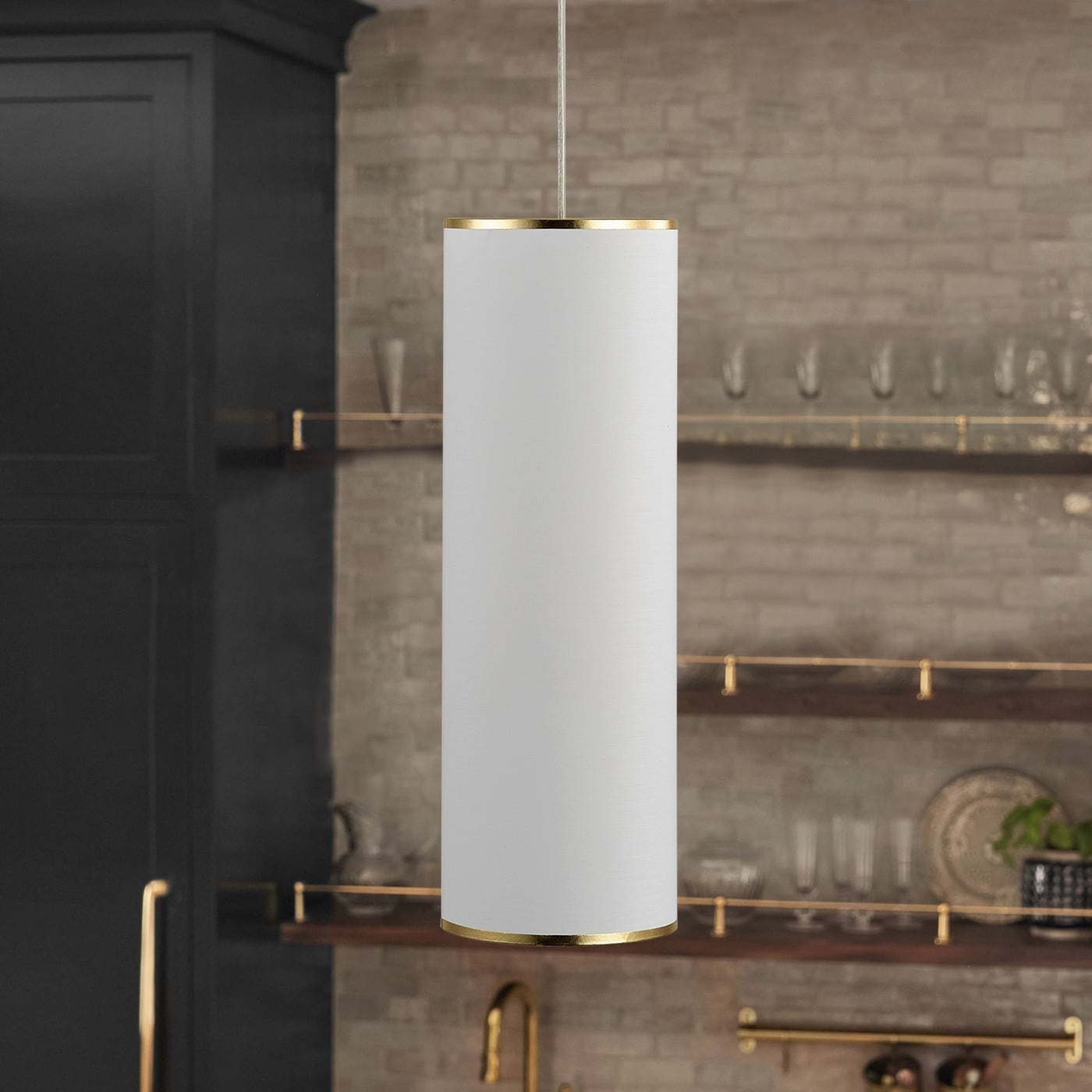Modern White 1-Light Pendant Light Fixture with Cylinder Fabric Shade